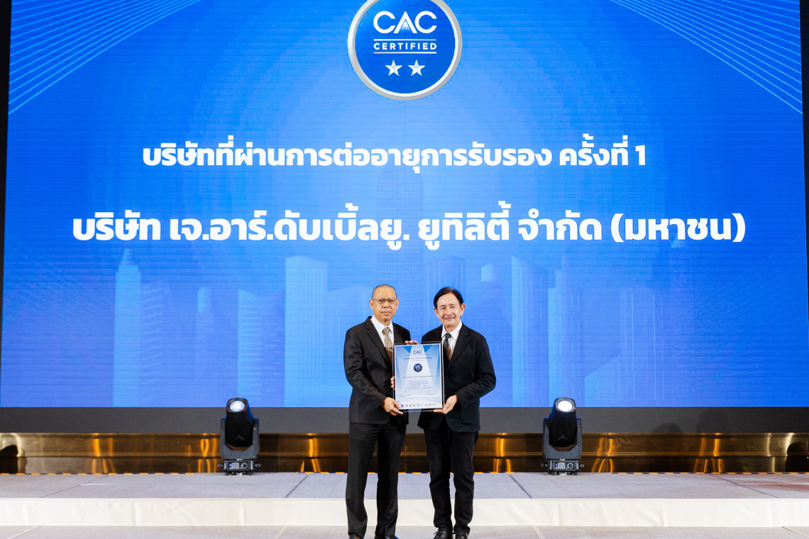 บริษัท เจ.อาร์.ดับเบิ้ลยู. ยูทิลิตี้ จำกัด (มหาชน) (JR) ได้รับการรับรองต่ออายุสมาชิกของแนวร่วมต่อต้านคอร์รัปชันของภาคเอกชนไทย (Thai Private Sector Collective Action against Corruption : CAC) ครั้งที่ 1 ตอกย้ำจุดยืนของบริษัทฯ ที่ให้ความสำคัญและยึดมั่นต่อการดำเนินธุรกิจภายใต้หลักธรรมาภิบาลบนพื้นฐานการกำกับดูแลที่ดี และต่อต้านการทุจริตคอร์รัปชันทุกรูปแบบ เพื่อความยั่งยืนขององค์กร รวมทั้งมีความรับผิดชอบต่อสังคม สิ่งแวดล้อม และผู้มีส่วนได้เสียทุกฝ่าย โดยมี นายสุรเดช อุทัยรัตน์ รองประธานเจ้าหน้าที่บริหาร เป็นตัวแทนรับมอบประกาศนียบัตร จาก นายพัฒนชัย กุลสิริสวัสดิ์ กรรมการ CAC ในงาน CAC Certification Ceremony 2025 "Business Integrity in Action ธุรกิจโปร่งใส สร้างได้ ด้วยวัฒนธรรมการแจ้งเบาะแส" จัดโดยสมาคมส่งเสริมสถาบันกรรมการบริษัทไทย (IOD) ณ โรงแรม อีสติน แกรนด์ พญาไท กรุงเทพฯ