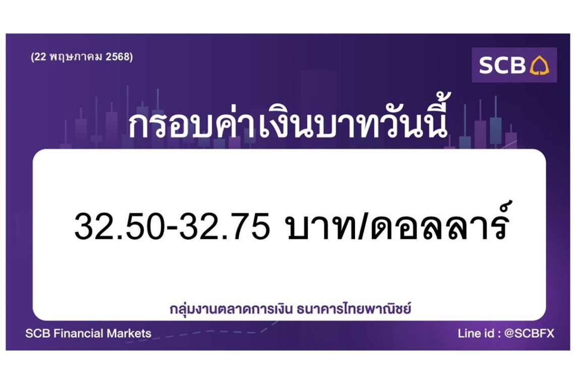 -กลุ่มงานตลาดการเงิน ธนาคารไทยพาณิชย์ ประเมินค่าเงินบาทวันนี้เคลื่อนไหวในกรอบ 32.50-32.75 บาท/ดอลลาร์