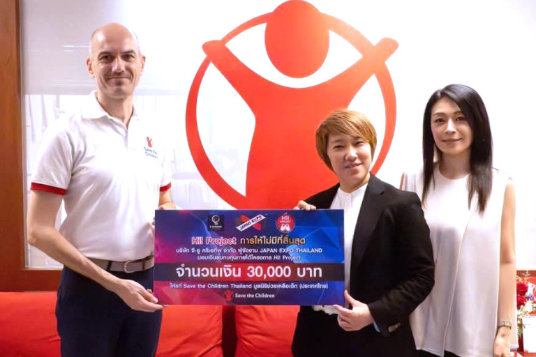 คุณยุพเรศ เอกธุระประคัลภ์ ประธานกรรมการ บริษัท จี-ยู ครีเอทีฟ จำกัด และคุณโทโมมิ โคบายาชิ รองประธานกรรมการ บริษัท จี-ยู ครีเอทีฟ จำกัด ได้เข้ามอบเงินสมทบทุน จำนวน 30,000 บาท จากรายได้จำหน่ายสินค้าในงาน Japan Expo Thailand 2025 ภายใต้โครงการ Hi! Project โปรเจคแห่งการ "ให้" แก่ Save the Children Thailand มูลนิธิช่วยเหลือเด็ก (ประเทศไทย) รับมอบโดย Executive Director จากมูลนิธิ
