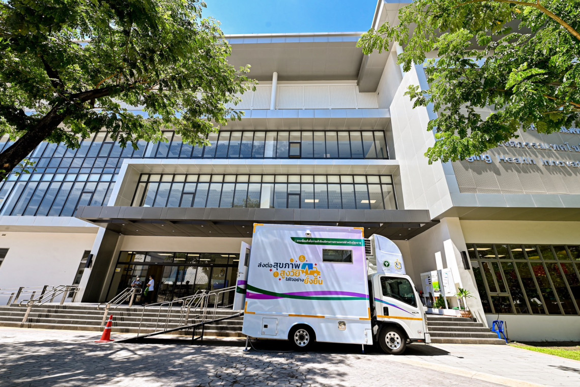 ทั้งนี้รถแต่ละคันยังติดตั้งระบบดิจิทัลที่เชื่อมโยงกับฐานข้อมูลโรงพยาบาล เพื่อวางแผนการดูแลต่อเนื่องและติดตามผลได้จริง ซึ่งเป็นการบูรณาการระหว่างเทคโนโลยี บุคลากร และชุมชนอย่างแท้จริง สะท้อนถึงการออกแบบที่คิดค้นมาอย่างรอบด้านสุขภาพผู้สูงอายุในเบื้องต้นในชุมชน พบว่าประมาณ 20% มีความเสี่ยงด้านสุขภาพอย่างน้อย 1 เรื่อง และที่น่ากังวลคือ พบว่าผู้สูงอายุถึง 38% มีโรคประจำตัวมากกว่า 2 โรคขึ้นไป พบมากที่สุดคือโรคไม่ติดต่อเรื้อรัง หรือ NCDs ซึ่งจากข้อมูลของสำนักงานสถิติแห่งชาติ ปี 2567 ระบุว่า ผู้สูงอายุในประเทศไทยมากกว่า 38% มีโรคประจำตัวมากกว่า 2 โรคขึ้นไป โดยโรคที่พบบ่อย ได้แก่ ความดันโลหิตสูง เบาหวาน โรคหัวใจ และภาวะกล้ามเนื้ออ่อนแรง