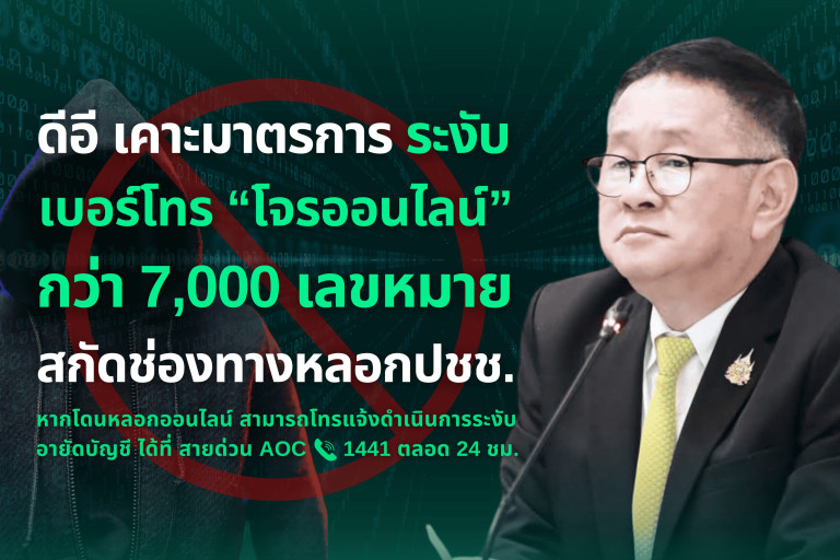 “ดีอี” เคาะมาตรการ ระงับเบอร์โทร “โจรออนไลน์” กว่า 7,000 เลขหมาย สกัดช่องทางหลอกลวงปชช.