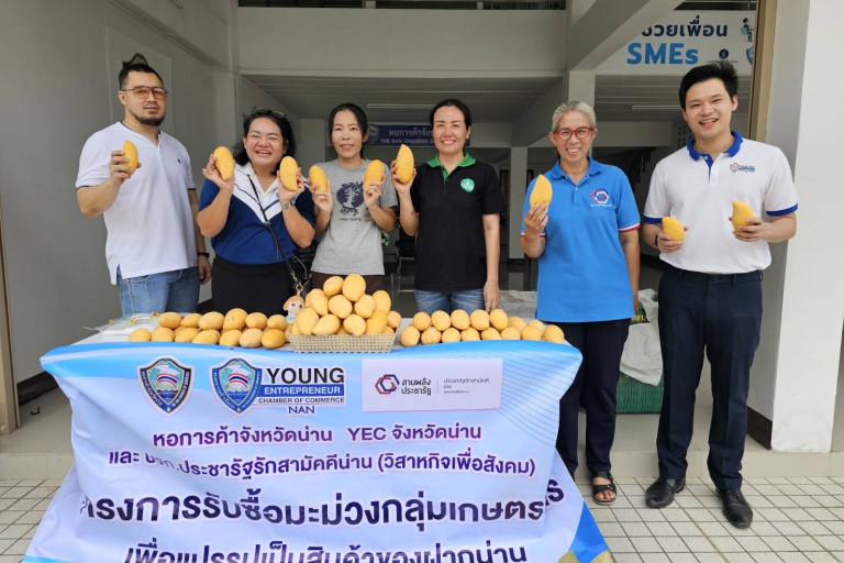 หอการค้าจังหวัดน่าน และบริษัทประชารัฐรักสามัคคีน่าน จำกัด ร่วมช่วยเหลือเกษตรกรผู้ปลูกมะม่วงน้ำดอกไม้สีทอง