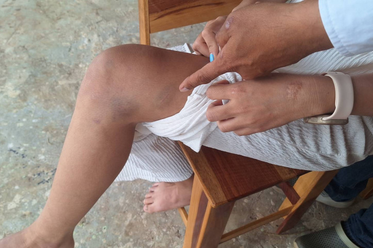 โดยน.ส.ออมสินได้ชี้ให้ผู้สื่อข่าวดูถึงบาดแผลตามร่างกาย โดยเฉพาะบริเวณเอวด้านซ้ายที่เขียวช้ำเนื่องจากถูกเตะเมื่อวันที่ 24 พ.ค.68 ที่ผ่านมา และมีเล็บนิ้วเท้าหลุดทั้งสองข้างเพราะถูกลาก และมีรอยฟกช้ำตามแขน ขา จากไฟแช๊คร้อนๆ ลนผิวหนังหลายจุด และมีรอยมีดกรีด หยิกใบหนู หัวแตกจากการจับกระแทก และซาดิสม์มีคลิปที่น้องออมสินถูกขืนใจแบบสุด ๆ ช่วงที่เพศสัมพันธ์ทั้งที่ไม่ยอมเขาก็กัด บีบคอ จิกหัวและอีกสารพัดไปด้วย ตอนนี้ไปแจ้งความแล้วไม่อยากให้หญิงสาวรายอื่นๆจากโซเซียลเจอกับตนเอง เพราะตอนนี้ทราบว่าเขาคบกับผู้หญิงเป็นสิบๆ คนเลยทีเดียว