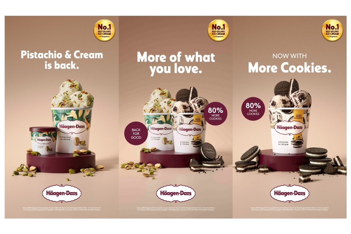 Häagen-Dazs ยกระดับความอร่อย มอบความพิเศษในรสชาติที่คุณรัก รส Cookies & Cream ที่ทุกคนโปรดปราน มาพร้อมกับคุกกี้ที่เพิ่มขึ้น ในขณะที่รส Pistachio & Cream ที่คนรักไอศกรีมหลงใหลจะอยู่ให้ได้ลิ้มรสความอร่อยไปตลอดกาล