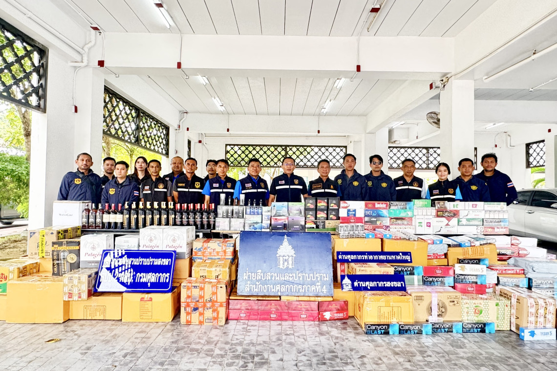 มูลค่า 76,000 บาท สำหรับสำนักงานศุลกากรภาคที่ 4 ด่านศุลกากรสงขลา และด่านศุลกากรท่าอากาศยานหาดใหญ่ ตรวจค้นพัสดุในบริษัทขนส่งเอกชนในพื้นที่จังหวัดสงขลา พบบุหรี่ต่างประเทศ จำนวน 972,000 มวน มูลค่า 4,630,000 บาท อีกทั้งยังได้เข้าตรวจค้นร้านค้าไม่ปรากฏเลขที่ในอำเภอหาดใหญ่ ซึ่งต้องสงสัยว่ามีการซุกซ่อน