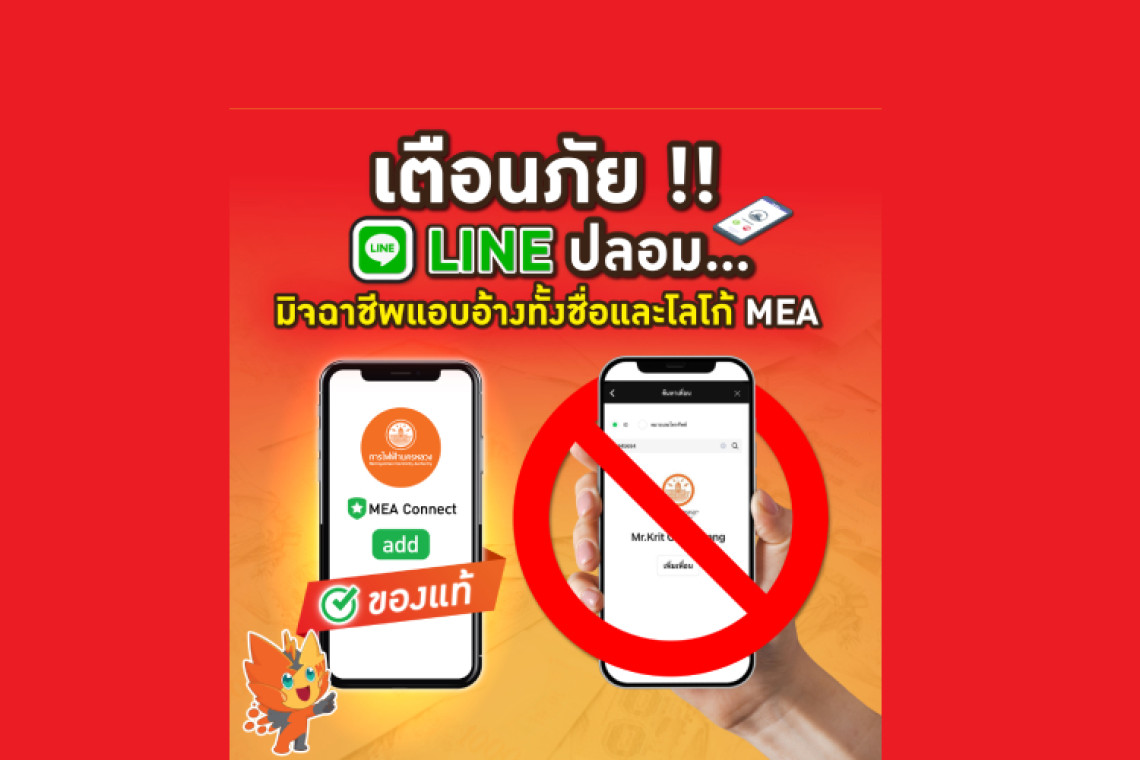 MEA หรือการไฟฟ้านครหลวง ห่วงใยเตือนประชาชน ให้ระมัดระวังมิจฉาชีพแอบอ้างเป็นเจ้าหน้าที่ของ MEA ให้บริการด้านไฟฟ้า หรือแอบอ้างว่าเป็นตัวแทนให้บริการต่าง ๆ และเรียกเก็บเงินค่าบริการผ่านช่องทางโซเชียล หรือช่องทางอื่นที่ไม่ใช่ช่องทางบริการของ MEA โดยใช้บัญชี LINE ปลอม หรือช่องทางสื่อสารอื่น ๆ เพื่อหลอกลวงให้โอนเงินหรือเปิดเผยข้อมูลส่วนบุคคล อาจก่อให้เกิดความเสียหายด้านทรัพย์สิน และข้อมูลส่วนตัว