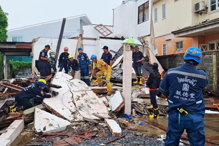 นายปิติรัตน์ ปัญญาสาร เจ้าหน้าที่กู้ภัยป่อเต็กตึ๊ง เปิดเผยว่า หลังจากได้รับแจ้งเหตุ ได้ระดมเครื่องมือและอุปกรณ์กู้ภัยพร้อมเจ้าหน้าที่เข้าช่วยเหลือ จากการตรวจสอบพบว่าคนงานถูกคานไม้และซากบ้านกดทับที่ขา เจ้าหน้าที่จึงประเมินสถานการณ์และวางแผนช่วยเหลือ โชคดีที่ไม่ถูกกดทับบริเวณสำคัญของร่างกาย อุปสรรคสำคัญในการช่วยเหลือคือสภาพน้ำท่วมขังและฝนที่ตกลงมาอย่างต่อเนื่อง ทำให้เจ้าหน้าที่ต้องเร่งช่วยเหลือแข่งกับเวลาเพื่อความปลอดภัยของคนงาน