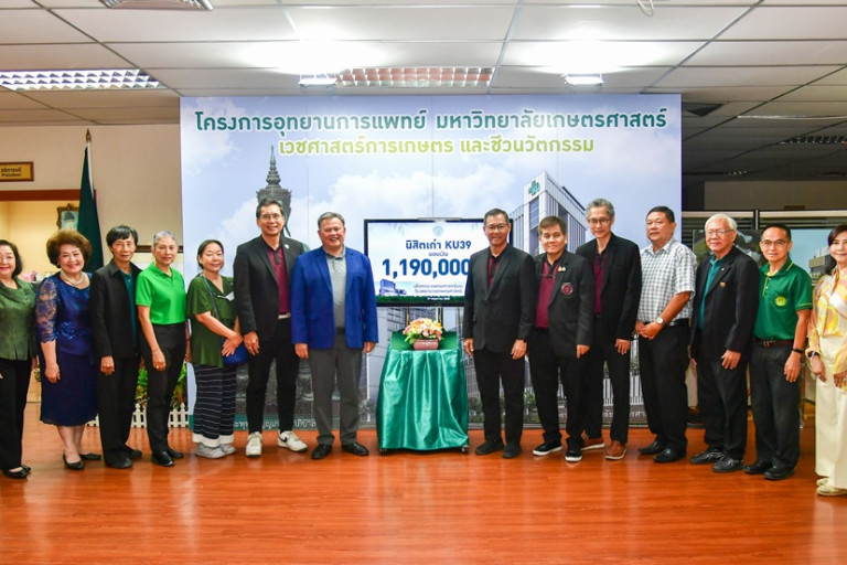 วันที่ 27 พ.ค.68 ดร.ดำรงค์ ศรีพระราม รักษาการแทนอธิการบดีมหาวิทยาลัยเกษตรศาสตร์ รับมอบเงินจำนวน 1,190,000 บาท จาก นิสิตเก่ามหาวิทยาลัยเกษตรศาสตร์ KU 39 เพื่อสมทบการก่อสร้างคณะแพทยศาสตร์และโรงพยาบาลเกษตรศาสตร์ โอกาสนี้ ผศ.ดร.นุชนาถ มั่งคั่ง รองอธิการบดีฝ่ายการเงินและบริหารทรัพย์สิน ร่วมให้การต้อนรับและเป็นสักขีพยานในการรับมอบเงิน ณ ห้องอธิการบดี อาคารสารนิเทศ 50 ปี มหาวิทยาลัยเกษตรศาสตร์