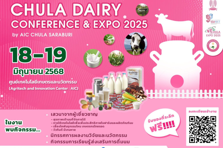 “ศูนย์เทคโนโลยีเกษตรและนวัตกรรม จ.สระบุรี จับมือ คณะสัตวแพทยศาสตร์ จุฬาฯ จัดงาน “Chula Dairy Conference and Expo 2025 by AIC Chula Saraburi” 18-19 มิ.ย.นี้ พบนิทรรศการอุตสาหกรรมโคนมไทย อัพเดทเทรนด์ใหม่ๆสร้างเครือข่ายวงการโคนม