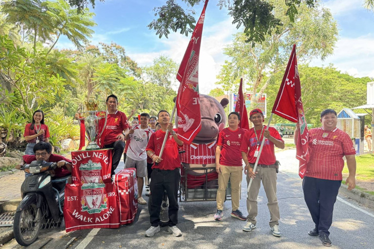 งานนี้ไม่ได้มีแค่เดินขบวนธรรมดา แต่ยังมีกิจกรรมถ่ายภาพกับมาสคอตในชุดลิเวอร์พูล โดยเฉพาะมาสคอตขวัญใจเด็ก ๆ อย่าง “ฮิปโปฯ หมูเด้ง” ที่มาร่วมสร้างสีสันในขบวนแห่ด้วยลีลาสุดกวนและชุดแข่งหงส์แดงสุดเท่ เรียกเสียงฮือฮาและคำขอถ่ายรูปตลอดทาง นักท่องเที่ยวที่มาเที่ยวสวนสัตว์ก็พลอยสนุกไปกับบรรยากาศสุดครึกครื้น ไม่ว่าจะเป็นเด็ก ผู้ใหญ่ หรือแม้แต่เจ้าสัตว์น้อยใหญ่ก็เหมือนจะตื่นเต้นไปด้วย