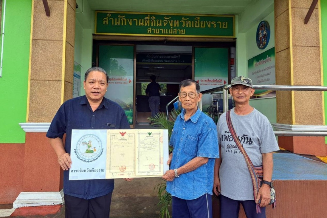 วันที่ 28 พ.ค.68 นายนิยม สุวรรณประภา หัวหน้าสำนักงานกองทุนฟื้นฟูและพัฒนาเกษตรกร สาขาจังหวัดเชียงราย (กฟก.) ได้ดำเนินการโอนโฉนดที่ดินและมอบโฉนดที่ดินให้เกษตรกร ตำบลบ้านด้าย อำเภอแม่สาย จำนวน 1 ราย เป็นโฉนดที่ดิน จำนวน 2 แปลง เนื้อที่ 2 งาน 28 ตารางวา ณ สำนักงานที่ดินจังหวัดเชียงราย สาขาแม่สาย
