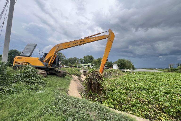 นายสืบศักดิ์ จงจิตต์ ผู้อำนวยการส่วนเครื่องจักรกล สำนักงานชลประทานที่ 10 (สชป.10) ได้มอบหมายให้นายธนชัย สุขสิกร หัวหน้าฝ่ายปฏิบัติการเครื่องจักรกลและยานพาหนะ นำรถแบคโฮบูมยาว 1 คัน และเรือกำจัดวัชพืช 1 ลำ พร้อมเจ้าหน้าที่ ลงพื้นที่บริเวณประตูระบายน้ำโคกกะเทียม ตำบลโคกกะเทียม อำเภอเมือง จังหวัดลพบุรี