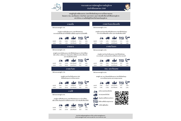 ดัชนีความเชื่อมั่นอนาคตเศรษฐกิจภูมิภาคประจำเดือนพฤษภาคม 2568 สะท้อนแนวโน้มเศรษฐกิจภูมิภาคใน 6 เดือนข้างหน้าที่ขยายตัวได้ในภาคเหนือและภาคตะวันออก จากปัจจัยสนับสนุนด้านการท่องเที่ยว อย่างไรก็ตาม เศรษฐกิจภูมิภาคยังมีปัจจัยท้าทายจากมาตรการกีดกันทางการค้าของประเทศมหาอำนาจ ความผันผวนของสภาพภูมิอากาศ รวมถึงระดับหนี้ครัวเรือนที่อยู่ในระดับสูง
