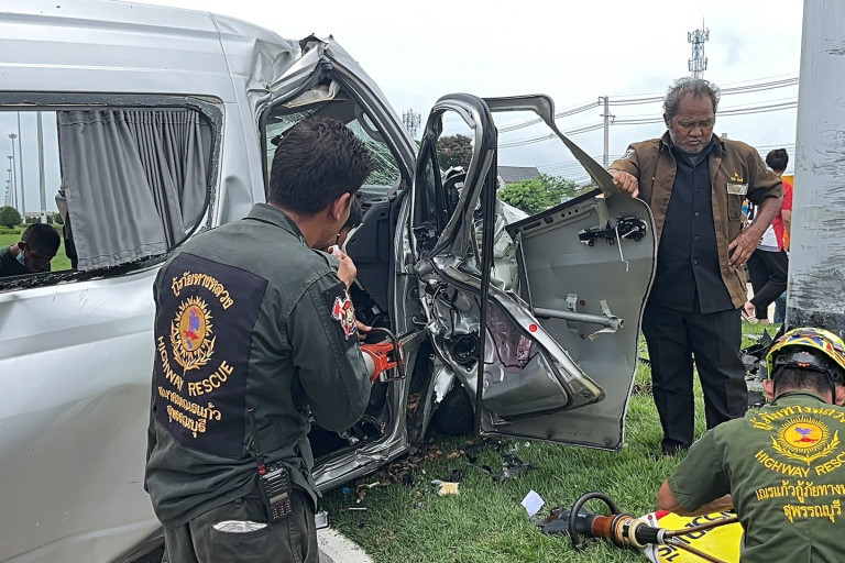 เมื่อเวลา 11.30 วันที่ 29 พฤษภาคม 68 ผู้สื่อข่าวรายงานว่า ร.ต.ท. หญิงอัญชิสา สถิตโสฬส พนักงานสอบสวนสภ. เมืองสุพรรณบุรี ได้รับแจ้งเหตุรถตู้ชนเสาไฟฟ้าเกาะกลางถนน 340 ขาเข้ากรุงเทพมหานคร บริเวณหน้าองค์การบริหารส่วนจังหวัดสุพรรณบุรี อำเภอเมืองสุพรรณบุรี มีคนเจ็บติดภายใน จึงเดินทางไปตรวจสอบเหตุพร้อมด้วยเจ้าหน้าที่สมาคมเณรแก้วกู้ภัยทางหลวงสุพรรณบุรี และมูลนิธิเสมอกันกู้ภัยสุพรรณบุรี นำอุปกรณ์ตัดถ่างรุดไปตรวจสอบเพื่อให้การช่วยเหลือ
