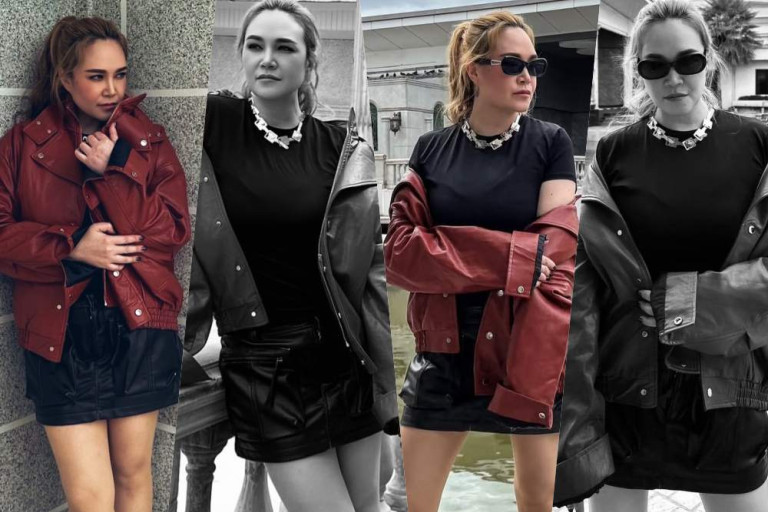 ในภาพที่แชร์ผ่านอินสตาแกรมทาทา มาในลุค สาวมั่นลุคเมืองนอก เสื้อยืดสีดำเรียบเท่ แมตช์กับ แจ็กเก็ตหนังสีแดงเลือดหมู พาดไหล่แบบไม่ตั้งใจ แต่เต็มไปด้วยความแพง พร้อมกางเกงหนังทรงสั้นโชว์เรียวขา และรองเท้าบูทส้นสูงสีเข้ากัน ดูมีพลัง แซ่บแต่สุขุมแบบ ตัวแม่สายแฟ
