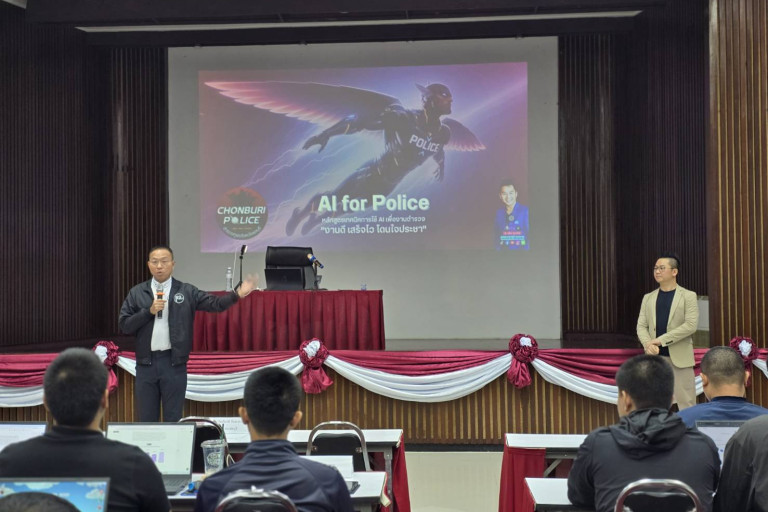 วันที่ 29 พฤษภาคม 2568 ที่ตำรวจภูธรจังหวัดชลบุรี พล.ต.ต.ธวัชเกียรติ จินดาควรสนอง ผู้บังคับการตำรวจภูธรจังหวัดชลบุรี เป็นประธานเปิดการอบรมเชิงปฏิบัติการ “การสร้างสื่อประชาสัมพันธ์เพื่อตำรวจยุคใหม่ด้วย AI” เป็นครั้งที่ 2 ภายใต้นโยบายสำคัญของ พล.ต.ท.ยิ่งยศ เทพจำนงค์ ผบช.ภ.2 ที่มุ่งเน้นให้ตำรวจทุกจังหวัดในสังกัดพัฒนาเทคโนโลยี AI มาใช้ในการปฏิบัติงาน โดยครั้งนี้ได้ขยายขอบเขตการฝึกอบรมให้ครอบคลุมเจ้าหน้าที่ตำรวจทุกสายงาน ทั้งฝ่ายป้องกันปราบปราม สืบสวน สอบสวน จราจร งานธุรการ-อำนวยการ ตลอดจนงานประชาสัมพันธ์และการเผยแพร่ข่าวสาร ตอกย้ำความพร้อมของชลบุรีในฐานะจังหวัดต้นแบบของภาค 2