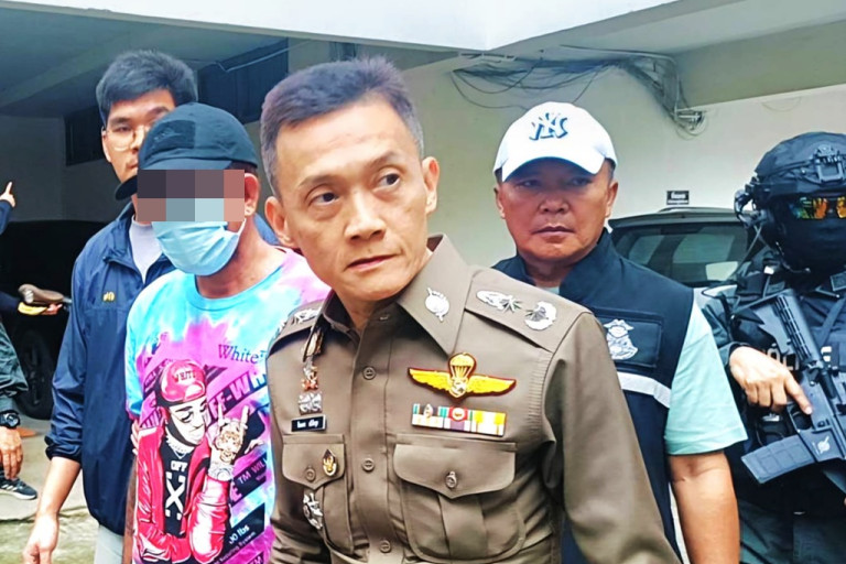วันที่ 29 พ.ค.68 ที่กองบังคับการตำรวจภูธรจังหวัดสมุทรสาคร พล.ต.ต.ธีระเดช อธิภัคกุล ผบก.ภ.จว.สมุทรสาคร พร้อมด้วย พ.ต.อ.สร ซื่อตรงพานิช ผกก.สภ.กระทุ่มแบน ได้ร่วมกันนำตัวนายธีรวิชญ์ หรือเอก อายุ 39 ปี ผู้ต้องหาคดีฆ่าผู้อื่นโดยเจตนา มาทำการสอบข้อเท็จจริงและพฤติการณ์ของผู้ต้องหา ภายหลังจากที่ผู้ต้องหาได้เข้ามอบตัวต่อผู้บังคับการตำรวจภูธรจังหวัดสมุทรสาคร