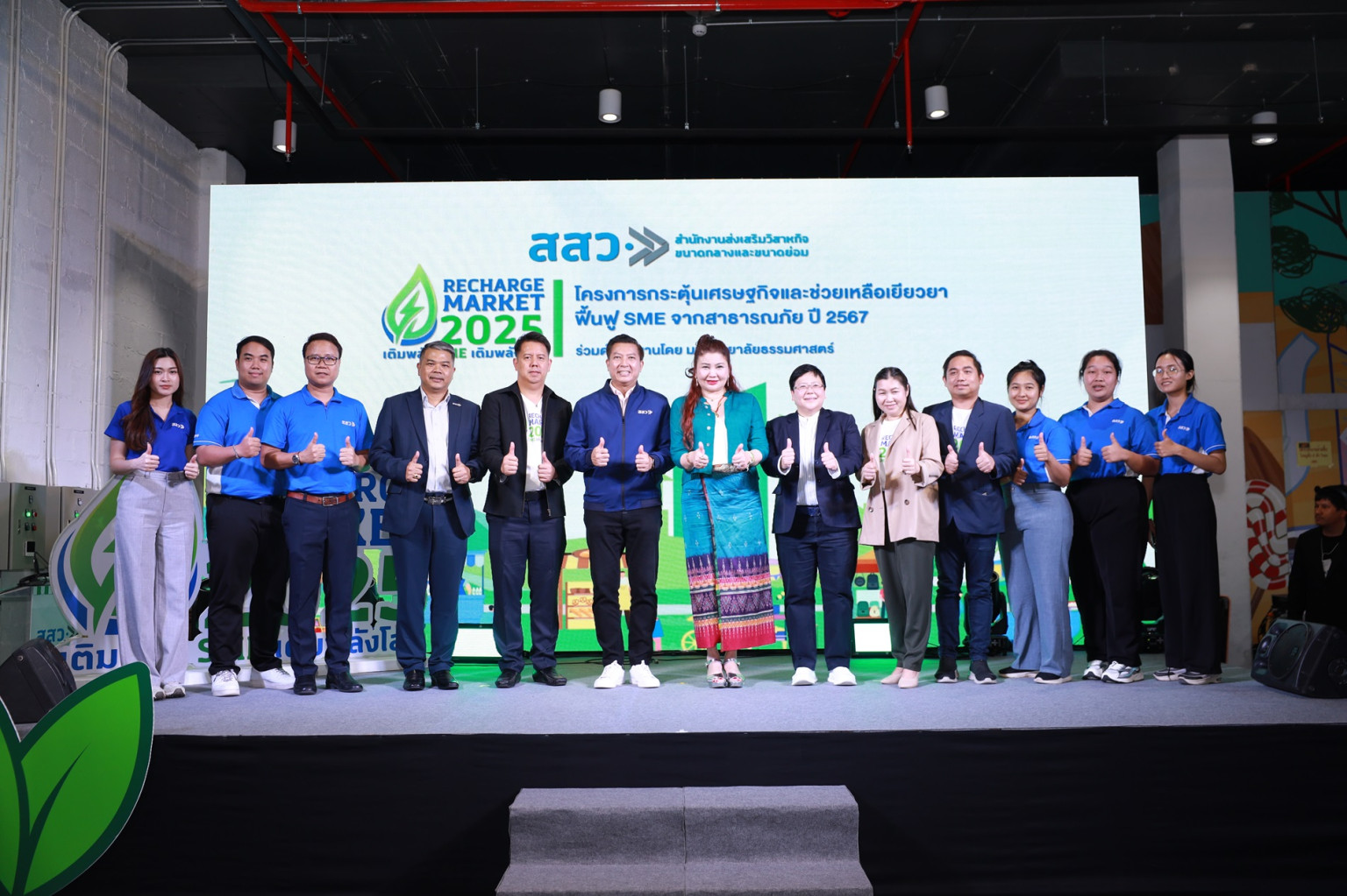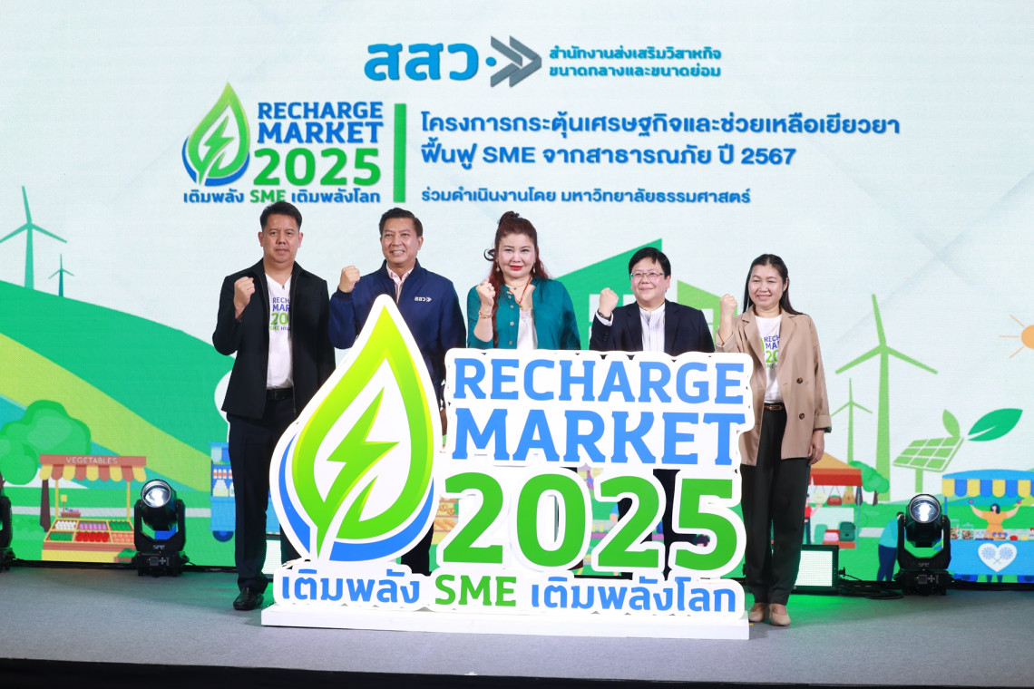 นางสาวปณิตา ชินวัตร รองผู้อำนวยการสำนักงาน รักษาการแทนผู้อำนวยการสำนักงานส่งเสริมวิสาหกิจขนาดกลางและขนาดย่อม (สสว.) กล่าวว่า เนื่องด้วยเหตุการณ์สาธารณภัยในปี 2567 ที่ผ่านมา เช่น ภัยน้ำท่วม ดินโคลนถล่ม และเหตุการณ์แผ่นดินไหวในปี 2568 ส่งผลกระทบต่อระบบเศรษฐกิจ และสร้างความเสียหายให้ผู้ประกอบการและประชาชนในวงกว้าง ดังนั้น สสว. จึงได้ร่วมกับมหาวิทยาลัยธรรมศาสตร์ ดำเนินโครงการกระตุ้นเศรษฐกิจและช่วยเหลือเยียวยาฟื้นฟู SME จากสาธารณภัย ปี 2567 โดยจัดงาน ตลาดนัด รีชาร์จ ฟื้นฟู SME ไทย : Recharge Market 2025 เติมพลัง SME เติมพลังโลก” ซึ่งเป็นไปตามนโยบายของรัฐบาลในการให้ความช่วยเหลือเยียวยา และบรรเทาผลกระทบจากสาธารณภัยในช่วงที่ผ่านมา รวมถึงกระตุ้นเศรษฐกิจในพื้นที่ นับเป็นโอกาสที่ดีที่จะช่วยส่งเสริมให้ผู้ประกอบการที่ได้รับผลกระทบจากสาธารณภัย และผู้ประกอบการที่ต้องการสร้างโอกาสทางการตลาดรวม 40 ราย ได้มีพื้นที่ในการนำเสนอสินค้า บริการ และพบปะกับผู้บริโภคโดยตรงเพื่อสร้างรายได้ อีกทั้งยังเป็นการสร้างขวัญกำลังใจ และเติมพลังให้กับผู้ประกอบการในการดำเนินธุรกิจในภาวะที่มีการแข่งขันทางการตลาดสูงในปัจจุบัน