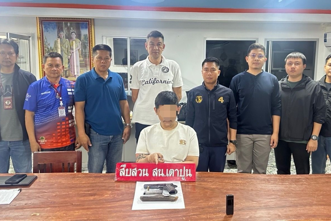 วันที่ 3 มิ.ย. 68 ที่ สน.เตาปูนพ.ต.อ.เด่นโดม ลาภานันท์ ผกก.สน.เตาปูน พ.ต.ท.อภิวัฒน์ อาจอินทร์ รอง ผกก.สส.สน.เตาปูน พ.ต.ท.จำลอง สาดสูงเนิน สว.สส.สน.เตาปูน พร้อมฝ่ายสืบสวน สน.เตาปูน จับกุมตัว นายอานนท์ หรือ จ่อย อายุ 21 ปี ข้อหา “มีอาวุธปืนและเครื่องกระสุนปืนไว้ในครอบครองโดยไม่ได้รับอนุญาต , พาอาวุธปืนไปในเมือง หมู่บ้านหรือทางสาธารณะโดยไม่ได้รับอนุญาตและไม่มีเหตุอันควร , ยิงปืนซึ่งใช้ดินระเบิดโดยใช่เหตุ ในเมือง หมู่บ้านหรือที่ชุมนุมชน โดยไม่มีเหตุอันสมควร” พร้อมของกลาง อาวุธปืนสั้นกึ่งอัตโนมัติ ขนาด.45 ยี่ห้อ Remington Rand 1911A1 ทะเบียน นบ4/379 จำนวน 1 กระบอก, กระสุนปืน ขนาด.45 จำนวน 1 นัด และ เสื้อยืดสีขาว และ กางเกงขาสั้นลายน้ำเงิน-ขาว ที่สวมใส่ขณะก่อเหตุ จับกุมได้ที่ห้องปฏิบัติการฝ่ายสืบสวน สน.เตาปูน ถนนกรุงเทพ-นนทบุรี แขวงและเขตบางซื่อ กทม.