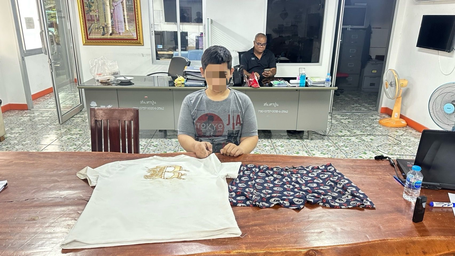 ต่อมาฝ่ายสืบสวน สน.เตาปูน ลงพื้นที่ตรวจสอบภาพจากกล้องวงจรปิด และสืบสวนจนทราบว่า ผู้ก่อเหตุ คือ นายอานนท์ โดยวันนี้ 3 มิ.ย. จึงเชิญตัวมาพบที่ห้องฝ่ายสืบสวน พร้อมนำอาวุธปืน เครื่องกระสุน และเสื้อผ้าที่ใช้ก่อเหตุมามอบให้