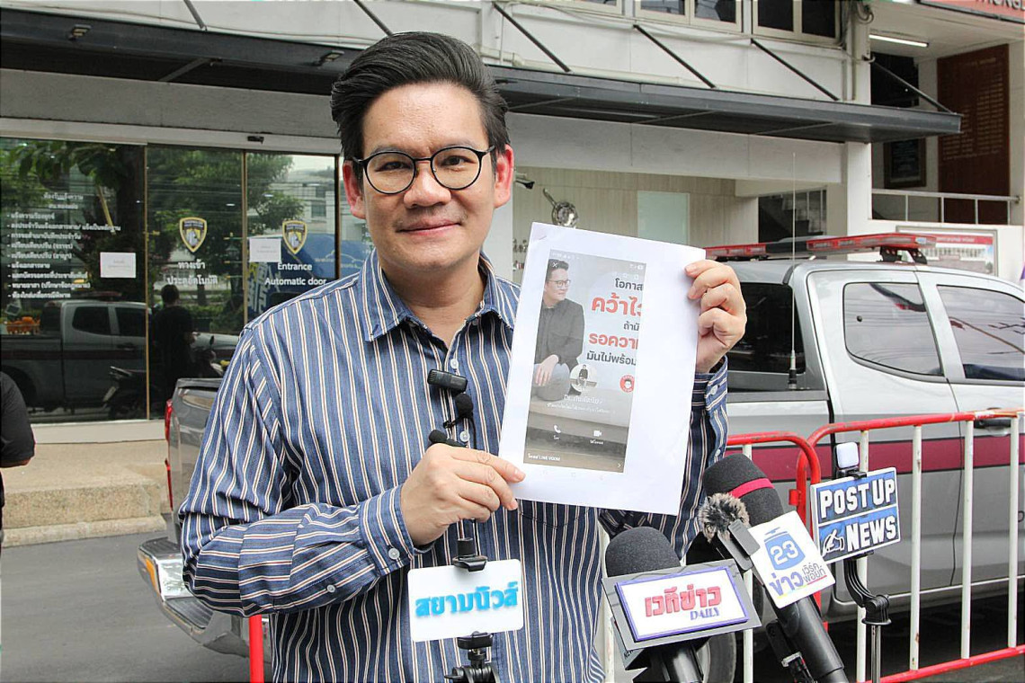 วันที่ 3 มิ.ย.68 นายเกรียงไกรมาศ พจนสุนทร หรือเคนโด้ ผู้ประกาศข่าวชื่อดัง เข้าแจ้งความ ที่ สน.ทองหล่อ ให้ดำเนินคดีกับกลุ่มมิจฉาชีพ ที่ได้นำรูปภาพตนเองทำโปรไฟร์ ในไลน์ อ้างใช้ชื่อ ดร.กันต์ดนัย เป็นที่ปรึกษาการลงทุนใน Line Shop โดยใช้ภาพสร้างความน่าเชื่อถือของเคนโด้ ให้ประชาชนสับสนและหลงเชื่อลงทุน พฤติกรรมของ มิจฉาชีพ จะเปิดกลุ่มไลน์ให้ลงทุน โดยอ้างว่าเป็นเจ้าหน้าที่ของ Line ประเทศไทย เข้ามาดูแลการลงทุน