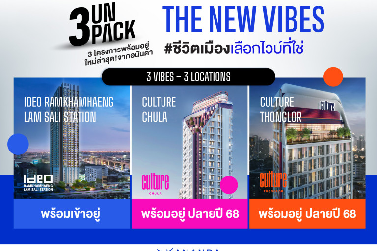 บริษัท อนันดา ดีเวลลอปเม้นท์ จำกัด (มหาชน) หรือ ANAN ผู้นำแห่งวงการพัฒนาที่อยู่อาศัยสำหรับคนเมือง ครองตำแหน่งผู้นำตลาดคอนโดมิเนียมติดรถไฟฟ้า มุ่งมั่นพัฒนาที่อยู่อาศัยเพื่อตอบโจทย์ชีวิตคนเมืองได้อย่างลงตัวที่สุด ตอกย้ำความเป็นแบรนด์ที่อยู่อาศัยสำหรับคนเมือง เปิดตัว 3 UNPACK THE NEW VIBES โครงการพร้อมอยู่ใหม่ บน 3 ทำเลคุณภาพที่ดีที่สุดใจกลางเมือง เชื่อมต่อแลนด์มาร์กการใช้ชีวิต ใกล้สถานีรถไฟฟ้าทั้ง BTS และ MRT ได้แก่ โครงการไอดีโอ รามคำแหง-ลำสาลี สเตชั่น โครงการคัลเจอร์ ทองหล่อ และ โครงการคัลเจอร์ จุฬา ภายใต้แนวคิด “ชีวิตในเมืองของแต่ละคนไม่เหมือนกัน” ที่ออกแบบแต่ละโครงการให้มี “VIBE” เฉพาะตัว และตอบโจทย์ “ตัวคุณ” ได้จริง พร้อมเสริมความมั่นใจด้วยมาตรฐานโครงสร้างระดับมืออาชีพ ATQPM หรือ Ananda Total Quality Project Management จากประเทศญี่ปุ่น ชี้โอกาสทองที่เหมาะที่สุดในการซื้ออสังหาริมทรัพย์
