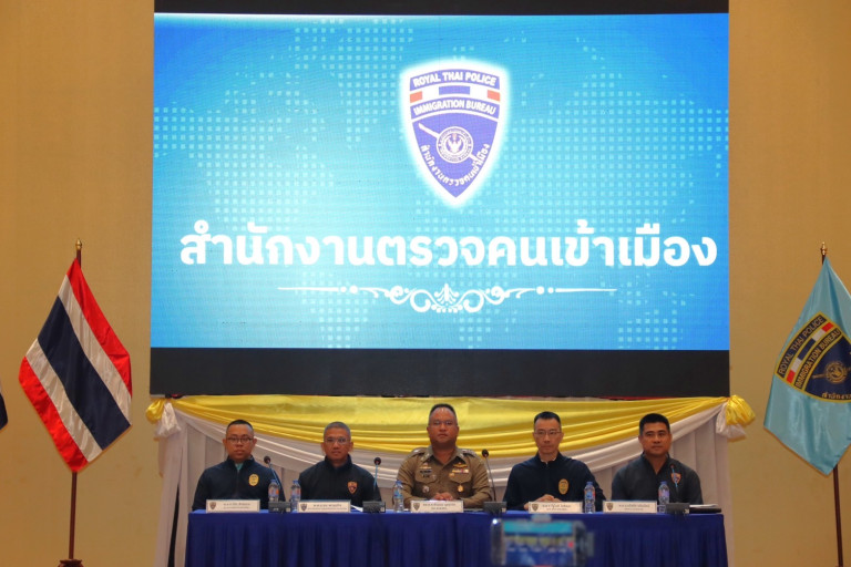 วันที่ 5 มิ.ย.68 ที่ บช.สตม.ภายใต้การอำนวยการของ พล.ต.ท.ภาณุมาศ บุญญลักษม์ ผบช.สตม., พล.ต.ต.พันธนะ นุชนารถ รอง ผบช.สตม., พล.ต.ต.ภานพ วรธนัชชากุล ผบก.สส.สตม., พ.ต.อ.รัฐโชติ โชติคุณ รอง ผบก.สส.สตม., พ.ต.อ.แดนไพร แก้วเวหล รอง ผบก.สส.สตม., พ.ต.อ.สุรศักดิ์ สุรินทร์แก้ว รอง ผบก.สส.สตม., พ.ต.อ.เฉลิมชนม์ แหลมทอง รอง ผบก.สส.สตม., พ.ต.อ.ธวัชชัย นรินรัตน์ ผกก.1 บก.สส.สตม., พ.ต.อ.ชย พานะกิจ ผกก.(สอบสวน) หน.กลุ่มงานสอบสวน บก.สส.สตม. แถลงข่าวจับกุมผู้ต้องหาชาวจีนเพื่อส่งตัวเป็นผู้ร้ายข้ามแดน
