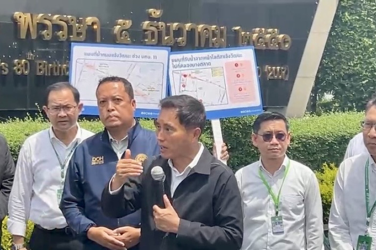 วันที่ 5 มิถุนายน 2568 ที่มณฑลทหารบกที่ 11 (มทบ.11) แจ้งวัฒนะ เขตหลักสี่ ในกิจกรรมสื่อมวลชนสัญจร ชมการบูรณาการการบริหารจัดการน้ำระหว่าง กรุงเทพมหานคร (กทม.) กรมทางหลวง และ มทบ.11 นายวิศณุ ทรัพย์สมพล รองผู้ว่าราชการกรุงเทพมหานคร เปิดเผยแผนจัดการน้ำท่วมย่านแจ้งวัฒนะและแผนจัดการในภาพรวมว่า ในภาพรวมทั่วกรุงเทพฯ มีจุดเสี่ยงน้ำท่วม 737 จุด แบ่งเป็นท่วมจากน้ำฝน 614 จุด และบริเวณริมแม่น้ำเจ้าพระยา 120 จุด เป็นผลสำรวจจากปี 2565 ที่มีปริมาณฝนถึง 2,200 มิลลิเมตร ทำให้ปัจจุบัน กทม.รู้จุดอ่อนและจุดเสี่ยงแต่ละพื้นที่ จึงนำเทคโนโลยีคาดการณ์ฝนล่วงหน้า 1-3 ชั่วโมงมาใช้ เพื่อสามารถส่งเจ้าหน้าที่ลงพื้นที่ได้ทันเวลา ในกรณีมีปริมาณฝน 100 มิลลิเมตรขึ้นไป จุดเปราะบางต่าง ๆ จะเกิดน้ำท่วมขังแน่นอน เช่น ย่านพัฒนาการ ย่านบางนา เป็นต้น แต่การพยากรณ์ล่วงหน้าทำให้เตรียมตัวได้ทัน สามารถระบายน้ำได้เร็วขึ้น