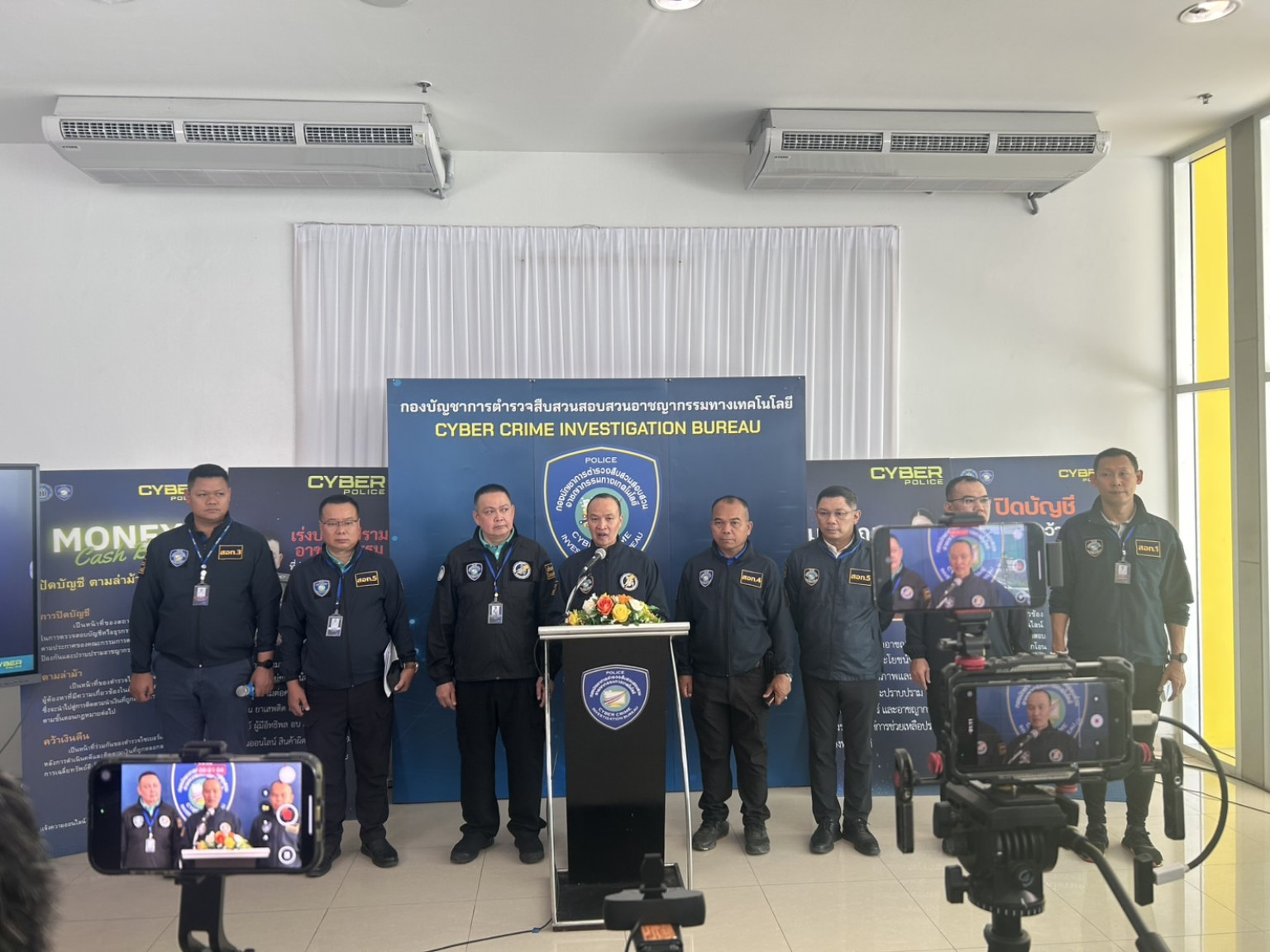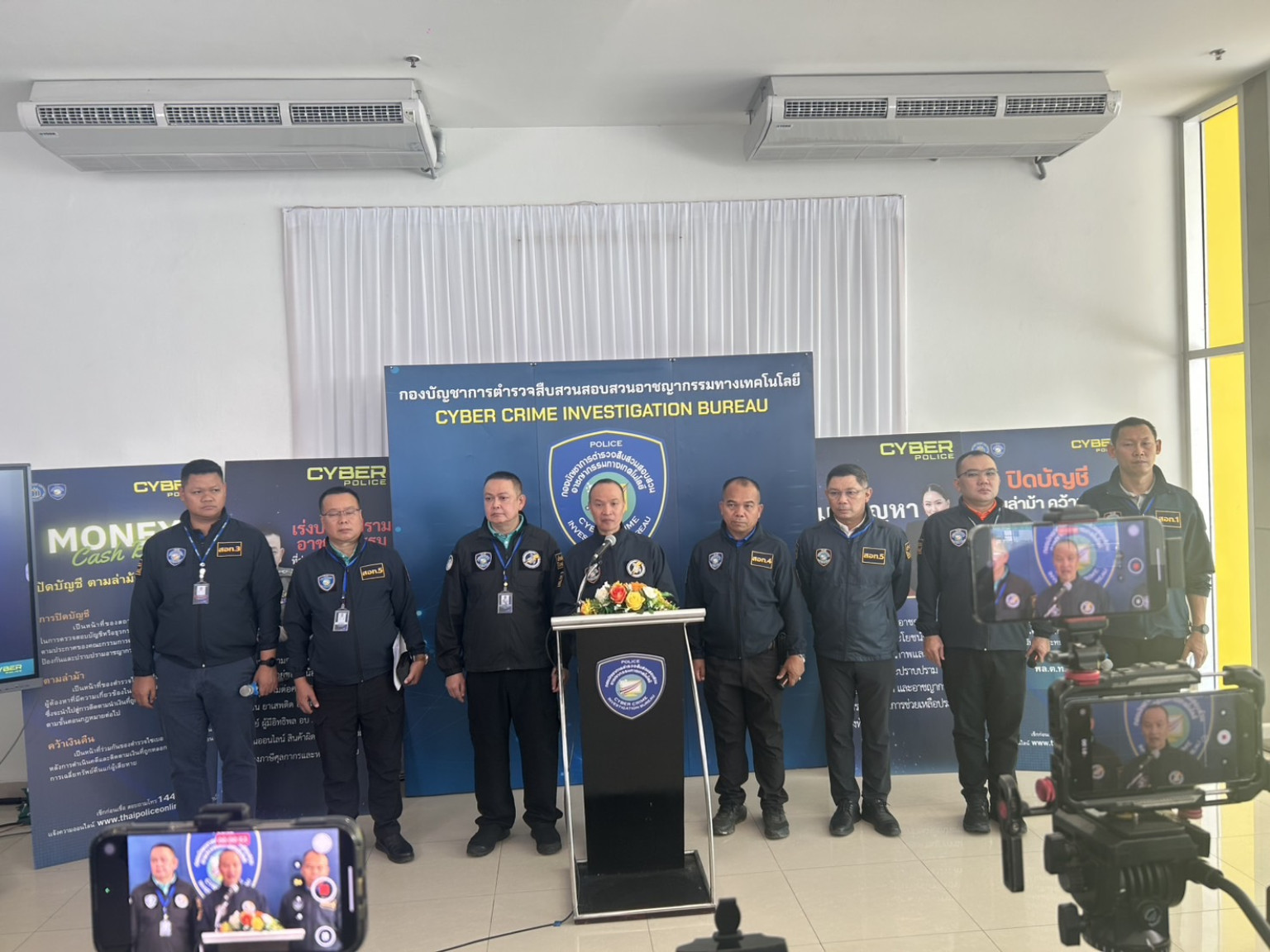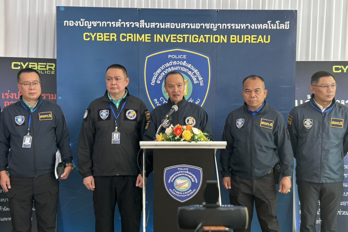 วันที่ 5 มิ.ย.68 ที่ บก.สอท.2 พล.ต.ท.ไตรรงค์ ผิวพรรณ ผบช.สอท., พล.ต.ต.อรรถสิทธิ์ สุดสงวน รอง ผบช.สอท., พล.ต.ต.วิวัฒน์ คำชำนาญ รอง ผบช.สอท., พล.ต.ต.ทินกร รังมาตย์ รอง ผบช.สอท. พร้อมเจ้าหน้าที่ที่เกี่ยวข้องร่วมแถลงข่าว ตำรวจไซเบอร์แถลงความคืบหน้าคดีลวง “ชาลอต” ปิดเกมกองร้อยปอยเปต รวบ 4 ตัวการ ศาลสั่งจำคุกเกือบ 20 ปี เร่งล่าเจ้าของบัญชีคริปโตชาวเขมร