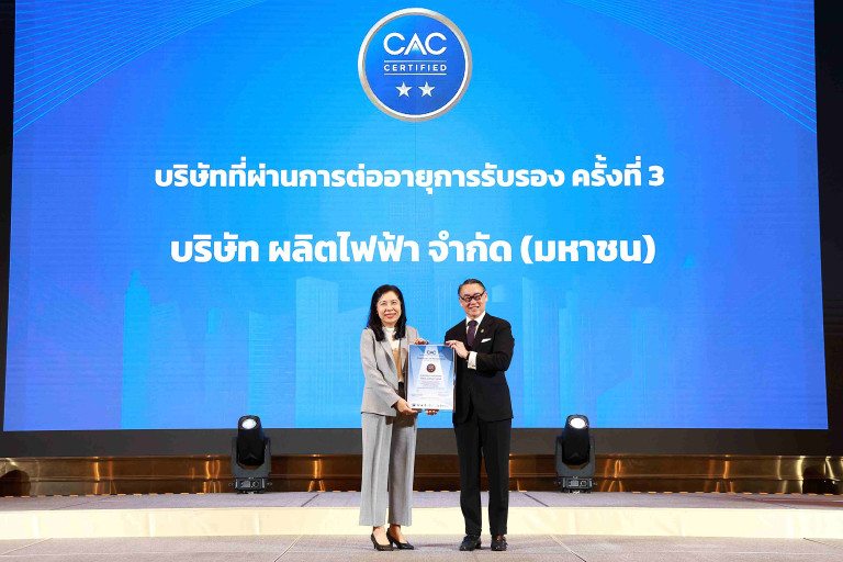 บริษัท ผลิตไฟฟ้า จำกัด (มหาชน) หรือ EGCO Group คว้าประกาศนียบัตรรับรองการต่ออายุสมาชิกแนวร่วมต่อต้านคอร์รัปชันของภาคเอกชนไทย (Thai Private Sector Collective Action Against Corruption: CAC) ต่อเนื่องเป็นครั้งที่ 3 ตอกย้ำนโยบายการดำเนินธุรกิจภายใต้การกำกับดูแลกิจการที่ดีและนโยบายต่อต้านการทุจริตและคอร์รัปชันที่เข้มแข็งทั่วทั้งองค์กร พร้อมทั้งได้ผลักดันให้พันธมิตร ตัวแทน และตัวกลางทางธุรกิจ เข้าใจและปฏิบัติตามนโยบายต่อต้านการทุจริตและคอร์รัปชันอย่างถูกต้อง