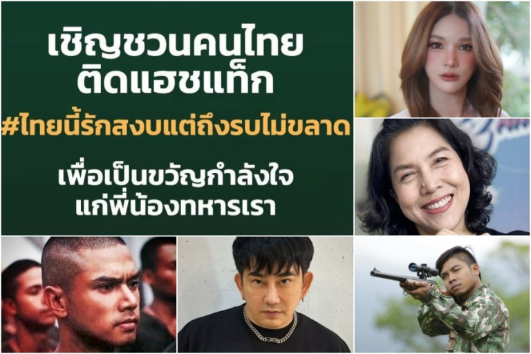 หลังจากที่ กองทัพบก ชวนคนไทยติดแฮชแท็ก"#ไทยนี้รักสงบแต่ถึงรบไม่ขลาด" ส่งใจให้ทหารไทยแนวหน้า ตามเสนอข่าวไปแล้วนั้น บรรดาคนบันเทิงต่างพร้อมใจกันติดแฮชแท็กดังกล่าว อาทิ แพรว คณิตกุล, ท็อป ดารณีนุช