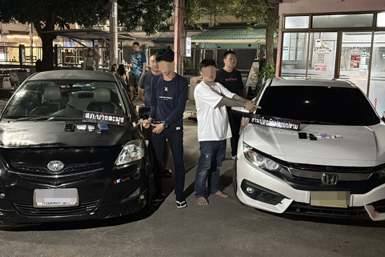 เมื่อวันที่ 7 มิ.ย.68 เวลา 22.00 น. พ.ต.อ.สราวุธ นุชนารถ ผกก.สภ.บางละมุง มอบหมายให้ พ.ต.ท.กรณ์พงษ์ สุขวิสิฏฐ์ รองผกก.สส.สภ.บางละมุง , ร.ต.ท.ธงธวัช พลละคร รอง สว.สส.สภ.บางละมุง (ชุดปฏิบัติการพิเศษ) พร้อมชุดสืบสวน สภ.บางละมุง ลงพื้นที่จับกลุ่มแก๊งเอเยนต์ ค้ายาเสพติดในพื้นที่อำเภอบางละมุง ตามนโยบายพล.ต.ต.ธวัชเกียรติ จินดาควรสนอง ผบก.ภ.จว.ชลบุรี สามารถจับกุมผู้ต้องหาได้ทั้งหมด 3 ราย พร้อมของกลางยาบ้าและยาไอซ์ รถยนต์อีก จำนวน 2 คัน