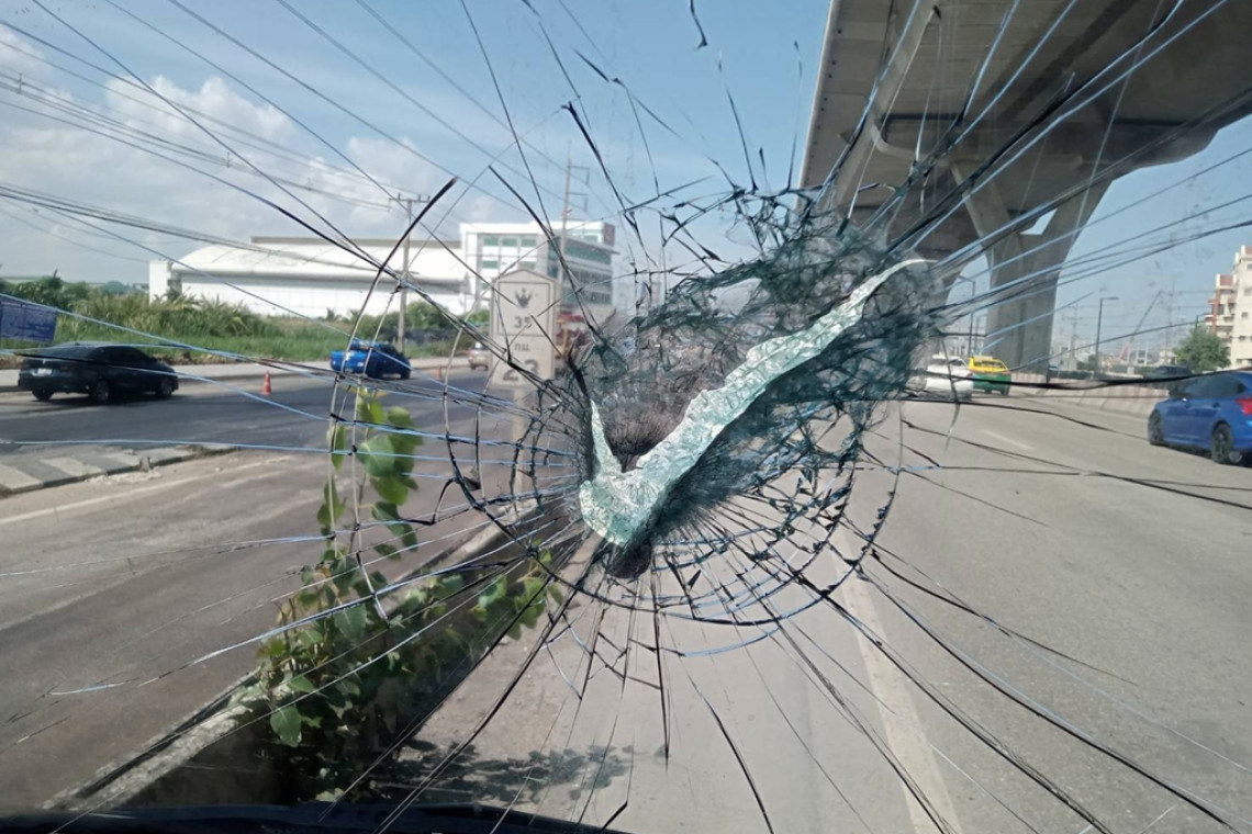 เมื่อช่วงค่ำของวันที่ 7 มิ.ย.68 ขณะที่ ร.ต.อ.วิวัฒนา กำใจ พนักงานสอบสวน สถานีตำรวจภูธรเมือง จังหวัดสมุทรสาคร กำลังเข้าเวรปฎิบัติหน้าที่อยู่ที่ สภ.เมืองสมุทรสาคร ได้มีนายจักรพรรณ คนขับรถ อีซูซุสีขาว ทะเบียนกรุงเทพมหานคร เข้ามาแจ้งความว่า ตนเอง ได้ขับรถอีซูซุโดยมีคนนั่งมาด้วยกันอีก 1 คน ขณะขับรถมาอยู่ดีดีบนถนนพระราม 2 ช่องทางด่วน ผ่านหน้าเซนทรัล มหาชัย อำเภอเมือง จังหวัดสมุทรสาคร เพื่อมุ่งหน้าเข้ากรุงเทพมหานคร ขับมาตามปรกติด้วยความเร็วประมาณ 60 กิโลเมตรต่อชั่วโมง จู่จู่ก็มีเหล็กเส้นยาวประมาณ 20 เซนติเมตรหล่นลงมาจากด้านบนกระแทกเข้ากับกระจกหน้ารถแตกเสียงดังสนั่น ตนกับคนที่นั่งมาด้วยกันต่างตกใจมากหันมามองหน้ากันว่า มีใครเป็นอะไรหรือเปล่า และรีบนำรถเข้าจอดข้างทาง โชคดีที่ไม่เป็นอะไรไม่ได้รับบาดเจ็บแต่อย่างใดทั้ง 2 คนจีงลงไปมองรอบๆรถและมองขึ้นไปด้านบนเห็นว่าน่าจะมีคนงานทำงานกันอยู่ด้านบนและทำเหล็กเส้นตกลงมาใส่หน้ารถจนกระจกแตก ตนจึงได้รีบเดินทางมายังโรงพักเพื่อมาแจ้งความ