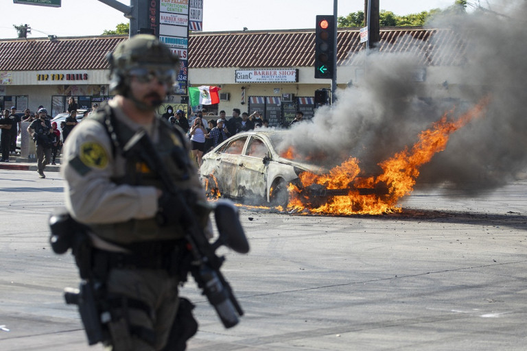ทรัมป์ส่งกองกำลังพิทักษ์มาตุภูมินับพันนาย ปราบม็อบต้านกวาดจับผู้อพยพในแอลเอ ด้านผู้ว่าการรัฐแคลิฟอร์เนียจวกยับรัฐบาลสหรัฐฯ กระพือไฟม็อบ เพื่อสร้างสถานการณ์ส่งหน่วยพิทักษ์มาตุภูมิมายังแอลเอ ทั้งๆ ที่เจ้าหน้าที่ท้องถิ่นมีเพียงพอ