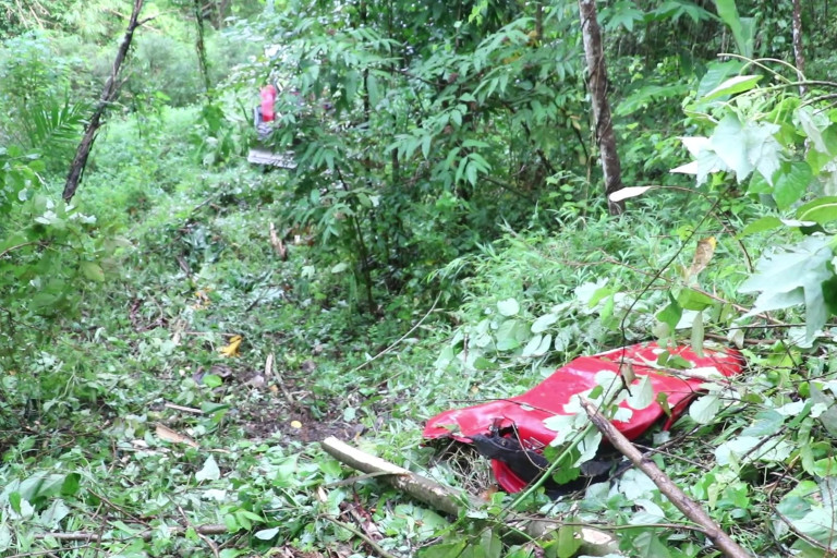 หนุ่มคนงานรับเหมาตัดไม้ยางพาราวัย 40 ปีขับรถไถรถพลาดเสียหลักตกเหวลึกราว 30 เมตร ถูกทับสียชีวิตส่วนเพื่อนสาวรุ่นน้องกระโดดหนีทันรอดตายหวุดหวิดแค่บาดเจ็บ