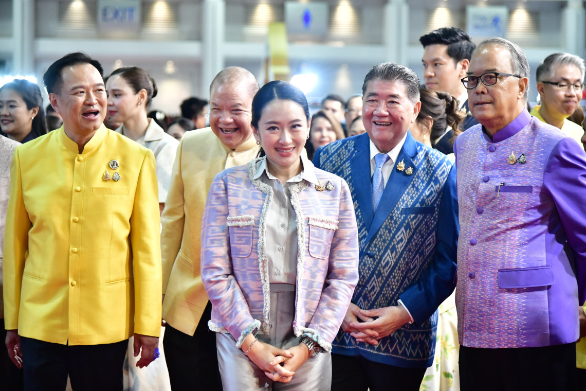 นายอรรษิษฐ์ สัมพันธรัตน์ ปลัดกระทรวงมหาดไทย นายสยาม ศิริมงคล อธิบดีกรมการพัฒนาชุมชน คณะทูตานุทูต ผู้บริหารหน่วยงานภาครัฐ ภาคเอกชน คณะทำงานโครงการผ้าไทยใสให้สนุก ผู้ประกอบการโอทอปร่วมงาน