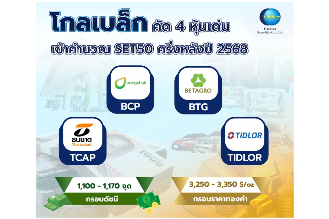 นายวัชเรนทร์ จงยรรยง ผู้อำนวยการฝ่ายวิจัย บล.โกลเบล็ก แนะนำกลยุทธ์การลงทุนในหุ้นที่คาดการณ์ว่าจะมีการนำเข้าคำนวณดัชนี SET50 ในรอบครึ่งปีหลังของปี 2568 ที่จะประกาศราวกลางเดือนมิ.ย. นี้ ได้แก่ BCP, BTG,TCAP และ TIDLOR
