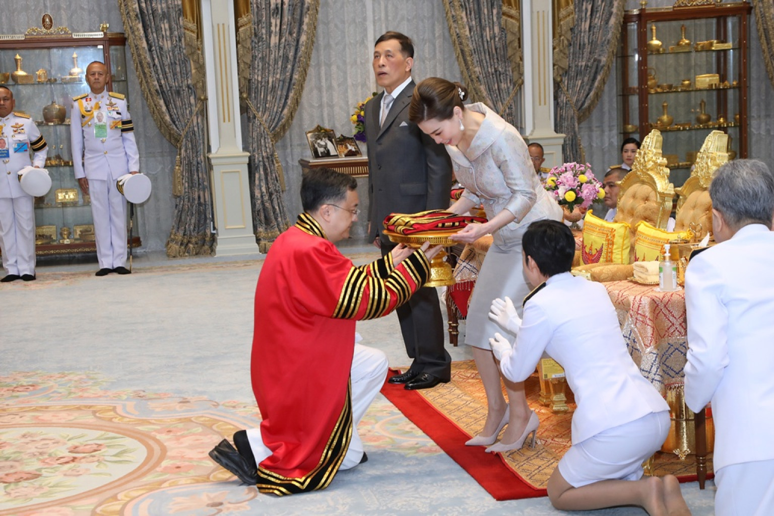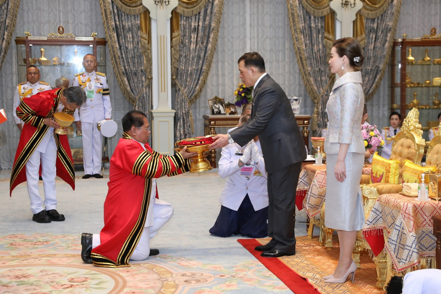 ศาสตราจารย์เกียรติคุณยงยุทธ ยุทธวงศ์ นายกสภามหาวิทยาลัยเทคโนโลยีพระจอมเกล้าธนบุรี นำ คณะผู้บริหารมหาวิทยาลัย ฯ เฝ้าทูลละอองธุลีพระบาท ทูลเกล้าทูลกระหม่อมถวายปริญญาวิศวกรรมศาสตรดุษฎีบัณฑิตกิตติมศักดิ์ สาขาวิชาวิศวกรรมเครื่องกล พร้อมครุยวิทยฐานะ และหุ่นจำลองเครื่องบินขับไล่สมรรถนะสูง “เอฟ ห้าอี” (F-5E) บรรจุในกล่องอะคริลิกใส แด่ พระบาทสมเด็จพระเจ้าอยู่หัว และทูลเกล้าทูลกระหม่อมถวายปริญญาปรัชญาดุษฎีบัณฑิตกิตติมศักดิ์ สาขาวิชาภาษาศาสตร์ประยุกต์ พร้อมครุยวิทยฐานะ และผ้าซิ่นไทยวน (ไท-ยวน) บรรจุในกล่องผ้าไหมสีม่วง แด่ สมเด็จพระนางเจ้า ฯ พระบรมราชินี