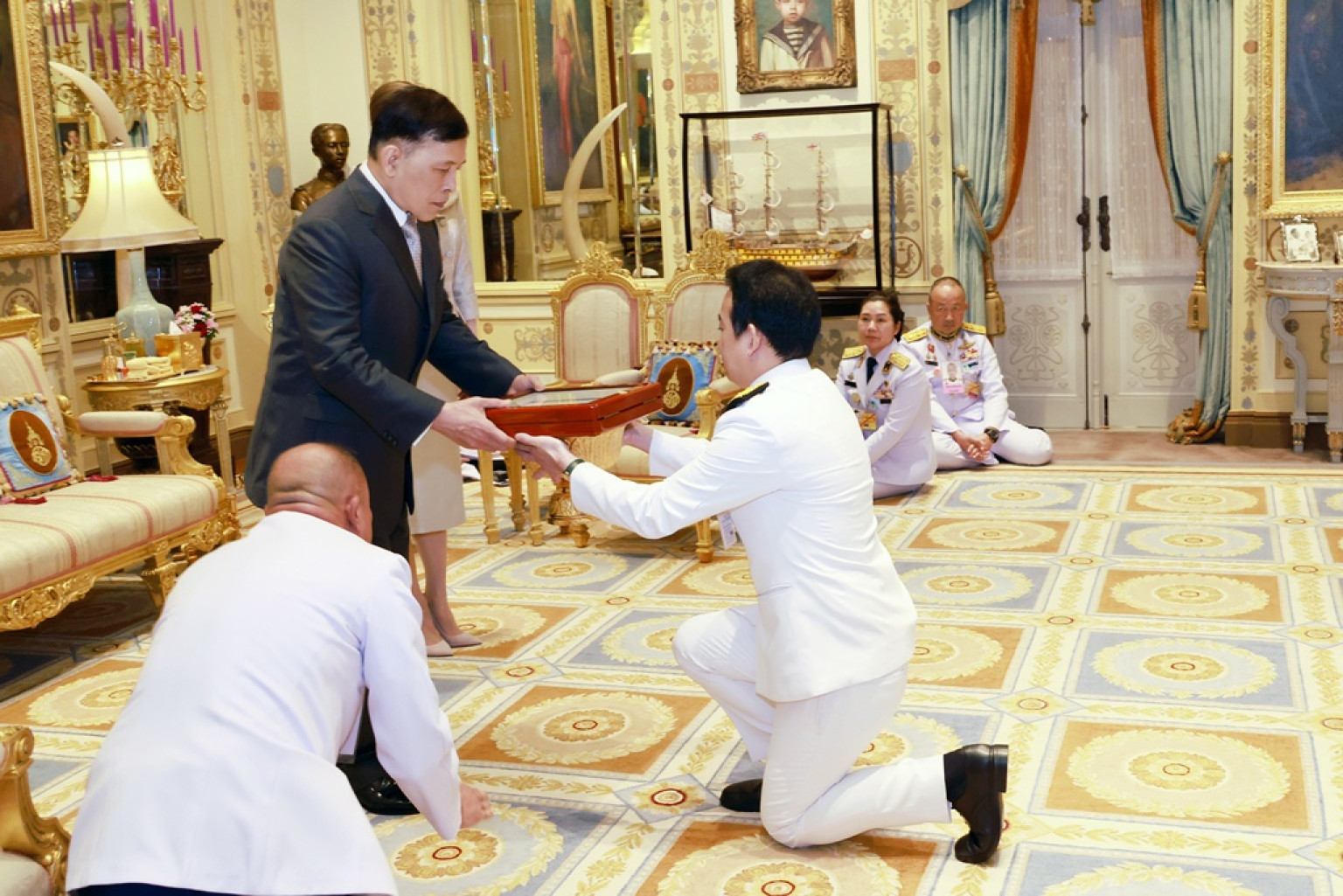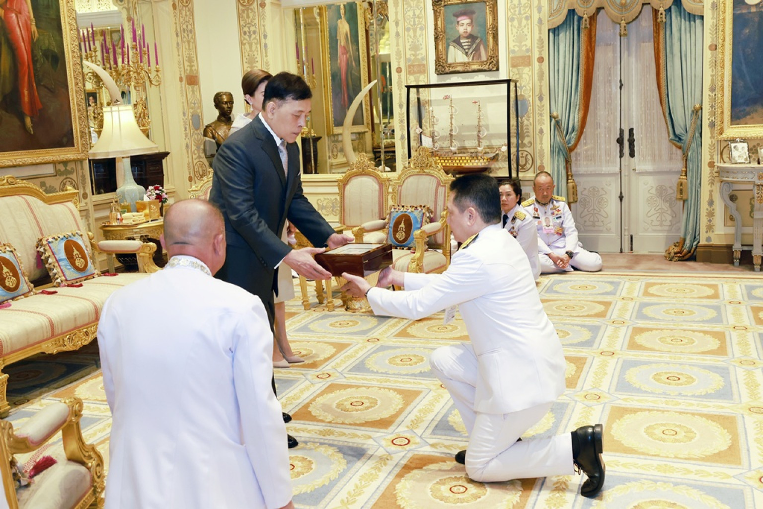 นายพิชัย ชุณหวชิร รัฐมนตรีว่าการกระทรวงการคลัง พร้อมด้วยคณะ เฝ้าทูลละอองธุลีพระบาท ทูลเกล้าทูลกระหม่อมถวายเหรียญกษาปณ์ที่ระลึก และเหรียญที่ระลึกพระราชพิธีสมมงคลพระชนมายุเท่า พระบาทสมเด็จพระพุทธยอดฟ้าจุฬาโลกมหาราช 14 มกราคม 2568 พร้อมกล่องไม้มะค่า แด่ พระบาทสมเด็จพระเจ้าอยู่หัว และสมเด็จพระนางเจ้า ฯ พระบรมราชินี