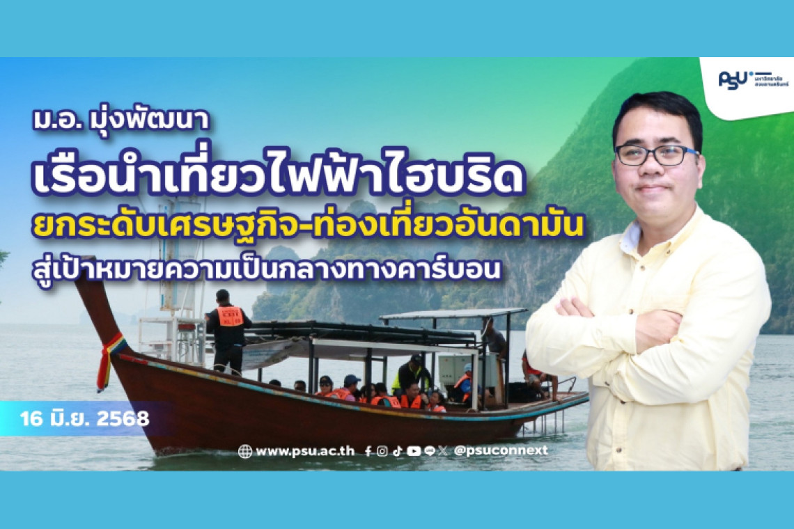 เช่นเดียวกันกับภาคการท่องเที่ยวทางฝั่งอันดามันของประเทศไทย มหาวิทยาลัยสงขลานครินทร์ โดย คณะการจัดการสิ่งแวดล้อม ที่ได้เข้ามามีบทบาทในการขับเคลื่อนการท่องเที่ยวที่เป็นมิตรต่อสิ่งแวดล้อมและยั่งยืน โดยการคิดค้น พัฒนา และนำนวัตกรรมระบบ Hybrid เข้ามาใช้ในอุตสาหกรรมเรือนำเที่ยว หรือเรือหัวโทง ซึ่งเป็นเรือที่นิยมใช้กันอย่างมากในแถบพื้นที่ฝั่งทะเลอันดามันบ้านเรา จนนำมาสู่การได้มาซึ่ง “เรือนำเที่ยวไฟฟ้าแบบไฮบริด” ที่ไม่ก่อให้เกิดมลพิษทางเสียง ไร้ควัน และนำไปสู่การใช้ประโยชน์ในเชิงอุตสาหกรรมการท่องเที่ยวได้จริง ทั้งยังสามารถส่งเสริมธุรกิจท่องเที่ยวอย่างยั่งยืนได้อีกด้วย