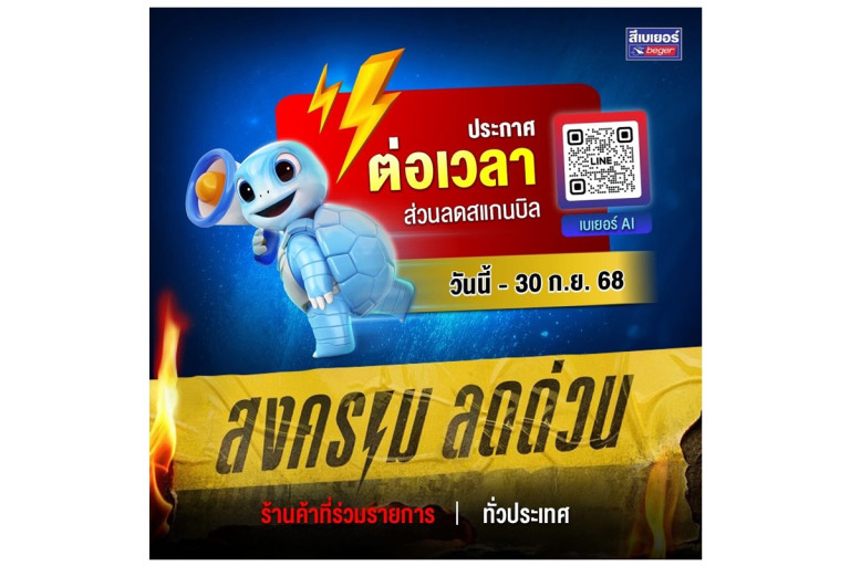 เบเยอร์จัดหนักขยายโปรฯด่วน “Beger AI สแกน-ลด-ลุ้น” ถึง 30 ก.ย. 68 – ชูความสำเร็จผู้นำดิจิทัลตัวจริงของตลาดสี ให้มากกว่าใคร ซื้อเยอะ ลดเยอะ!