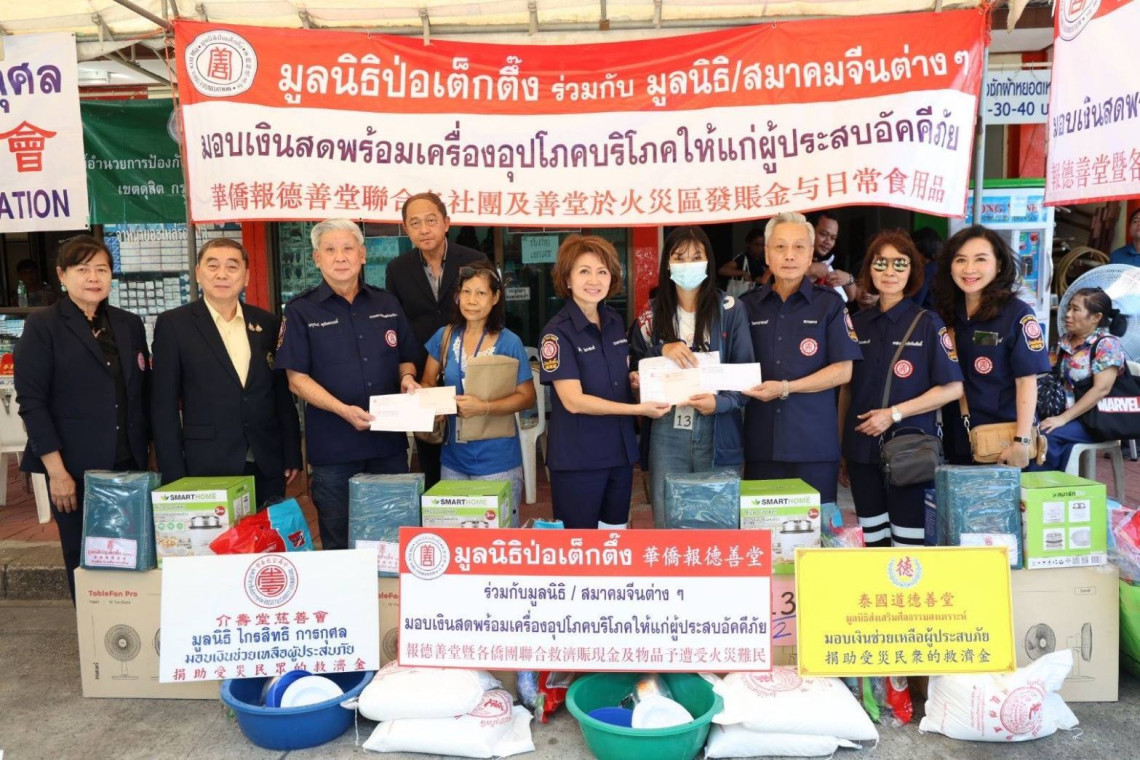 ลงพื้นที่ให้ความช่วยเหลือผู้ประสบอัคคีภัยบริเวณชุมชนซอยสุคันธาราม 23 เขตดุสิต กรุงเทพฯ รวมจำนวน 14 ครอบครัว 30 คน โดยมอบเงินสดคนละ 3,500 บาท พร้อมมอบเครื่องอุปโภคบริโภครายครอบครัว 8 ชุด รายบุคคล 6 ชุด รวมมูลค่าการช่วยเหลือทั้งสิ้น 134,000 บาท ในการนี้ มูลนิธิไกรสิทธิการกุศล ร่วมมอบเงินสด คนละ 400 บาท มูลนิธิส่งเสริมศีลธรรมสงเคราะห์ ร่วมมอบเงินสด ครอบครัวละ 500 บาท และพุทธสมาคมปทุมรังษี ร่วมมอบข้าวสาร คนละ 10 กิโลกรัม รวมการช่วยเหลือทั้ง 4 องค์กรคิดเป็นมูลค่าทั้งสิ้น 159,000 บาท (หนึ่งแสนห้าหมื่นเก้าพันบาทถ้วน) โดยมี อาสาสมัครกิตติมศักดิ์มูลนิธิป่อเต็กตึ๊ง นำโดย นางศิริพร โอภาสวงศ์ และ นางศิริวรรณ โอภาสวงศ์ ร่วมลงพื้นที่แจกจ่ายและให้กำลังใจแก่ผู้ประสบภัย ณ บริเวณชุมชนซอยสุคันธาราม 23 เขตดุสิต กรุงเทพฯ