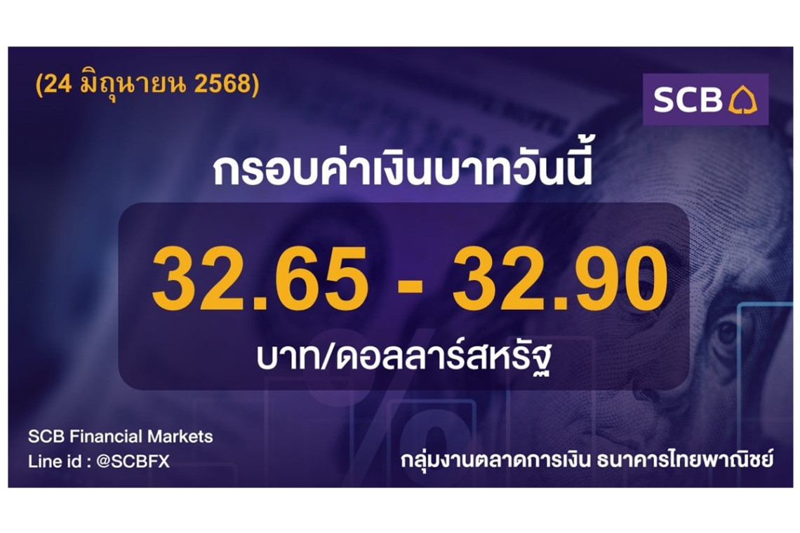 กลุ่มงานตลาดการเงิน ธนาคารไทยพาณิชย์ (SCB Financial Markets) ค่าเงินบาทประจำวันที่ 24 มิถุนายน 2568