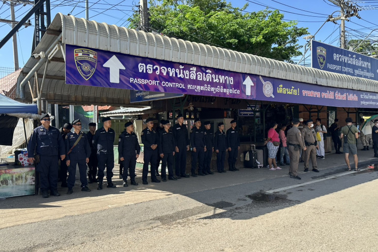 วันที่ 24 ม.ย.68 ที่บริเวณหน้าด่านบ้านคลองลึกหลังจากกองทัพบกสั่งการกองทัพภาคที่1 ให้ปิดชายแดนไทยกัมพูชาทางด้านจังหวัดสระแก้วตลอด 165กม ภาพบรรยากาศเช้าวันนี้ ที่บริเวณหน้าด่านบ้านคลองลึก อำเภออรัญประเทศ จังหวัดสระแก้ว หลังจากกองทัพบกสั่งการกองทัพภาคที่1 ให้ปิดชายแดนไทยกัมพูชาทางด้านจังหวัดสระแก้วตลอด 165กม. 3จุดผ่านแดนถาวร 2 จุดผ่อนปรน ห้ามทั้งคนและรถสินค้า แต่ยังอนุโลมนักเรียนและผู้ป่วยข้ามชายแดนได้