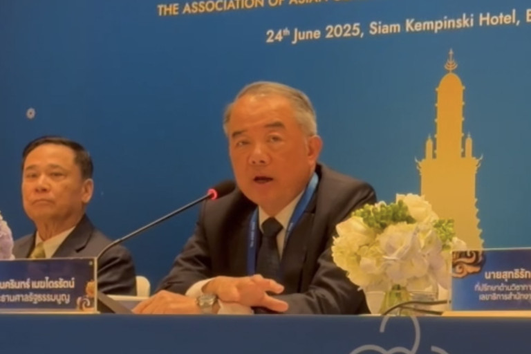 วันที่ 24 มิ.ย.68 ที่โรงแรมสยาม เคมปินสกี้ กรุงเทพฯ นายนครินทร์ เมฆไตรรัตน์ ประธานศาลรัฐธรรมนูญ ให้สัมภาษณ์กรณีนายมงคล สุระสัจจะ ประธานวุฒิสภา ได้ยื่นคำร้องขอให้ศาลรัฐธรรมนูญวินิจฉัยสถานะความเป็นนายกรัฐมนตรีของ น.ส.แพทองธาร ชินวัตร สิ้นสุดลงเป็นการเฉพาะตัว ตามรัฐธรรมนูญ มาตรา 170 วรรคสาม ประกอบมาตรา 160 (4) และ (5) หรือไม่ จากกรณีปรากฏคลิปเสียงสนทนากับสมเด็จฮุน เซน ประธานวุฒิสภากัมพูชา ว่าในวันที่ 1 ก.ค.นี้เรามีการนัดประชุมไว้ล่วงหน้า ซึ่งจะมีการตัดสินคดีเกี่ยวกับกฎหมายวิธีพิจารณาความอาญาขัดต่อรัฐธรรมนูญหรือไม่ วันนั้นก็จะเป็นวันที่ลงมติมีคำพิพากษาในคดีดังกล่าว ส่วนเรื่องที่ร้องเรื่องคลิปเสียง ตนยังไม่ได้ดู ตอนนี้อยู่ในกระบวนการรับเรื่อง ขอให้กลับไปที่สำนักงานศาลรัฐธรรมนูญ เพื่อดูหนังสือทั้งหมดว่าเป็นตามขั้นตอนถูกต้องหรือไม่