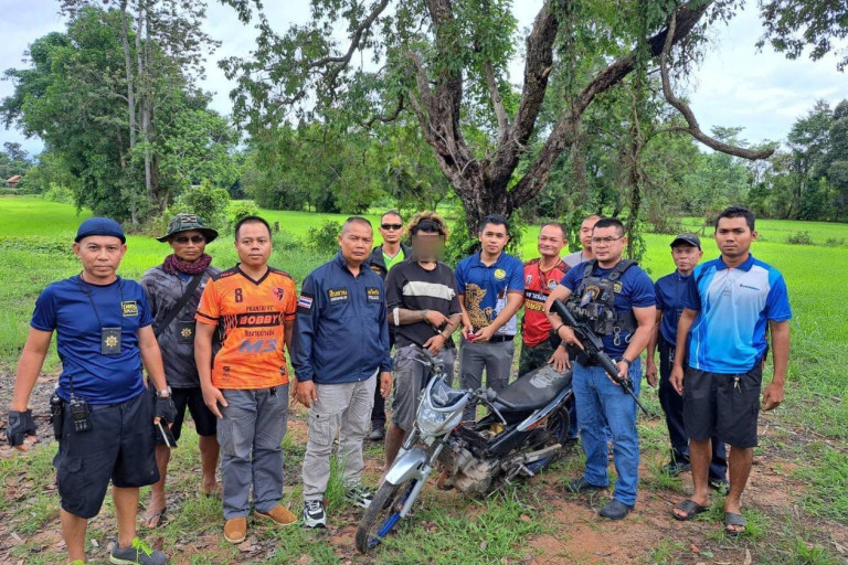 ต่อมาเจ้าหน้าที่ชุดดังกล่าวได้สนธิกำลังร่วมกันขยายผล ลงพื้นที่ หมู่ที่ 1 ต.โพนปลัด อ.ไพรบึง จ.ศรีสะเกษ ได้ทำการล่อซื้อกับผู้ที่ส่งยาบ้าให้จำหน่าย เมื่อถึงจุดนัดหมายพบ นายทนงสิทธิ์ อายุ 33 ปี มายังจุดเกิดเหตุ เมื่อเห็นเจ้าหน้าที่นายทนงสิทธิ์ ได้พยายามวิ่งหนี โดยมีลักษณะมือซ้ายกำสิ่งของบางอย่าง เจ้าหน้าที่จึงวิ่งตามกระทั่งสามารถตะครุบตัวได้ในที่สุด ตรวจสอบพบยาบ้า จำนวน 106 เม็ด กำอยู่ในมือซ้าย พร้อมนำตัวตรวจปัสสาวะ มีผลเป็นบวก มีสารเสพติดในร่างกาย จึงแจ้งข้อหา เสพยาเสพติดให้โทษ และครอบครองเพื่อจำหน่ายซึ่งยาเสพติดให้โทษ (ยาบ้า) จากนั้นได้ร่วมกันควบคุมตัวผู้ต้องหา พร้อมของกลางทั้งหมด นำส่งพนักงานสอบสวน สภ.ไพรบึง ดำเนินคดีตามกฎหมายต่อไป
