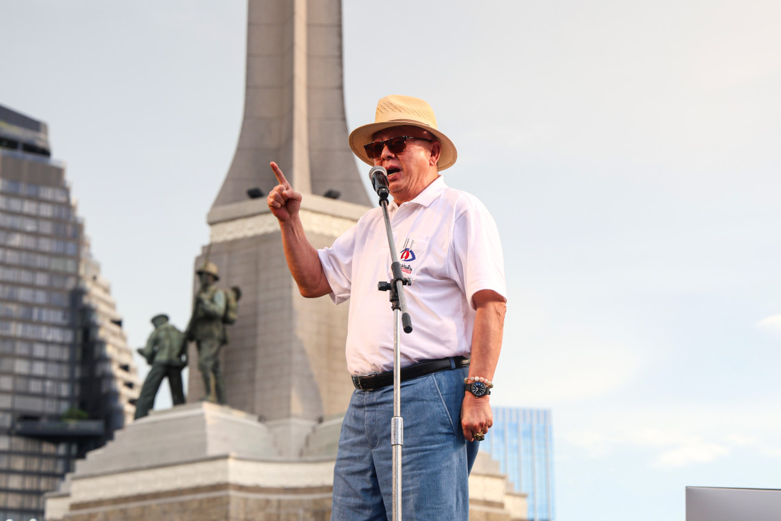 วันที่ 28 มิ.ย.2568 เมื่อเวลา 18.20 น. ที่บริเวณอนุสาวรีย์ชัยสมรภูมิ นายสนธิ ลิ้มทองกุล อดีตแกนนำกลุ่มพันธมิตรประชาชนเพื่อประชาธิปไตย ได้ขึ้นเวทีปราศรัยในการชุมนุมของกลุ่มรวมพลังแผ่นดิน ปกป้องอธิปไตย โดยเปิดคลิปเสียงคำปราศรัยของของจอมพลสฤษดิ์ ธนะรัชต์ อดีตนายกรัฐมนตรี หลังเสียเขาพระวิหารให้กัมพูชา เมื่อปี 2505 ว่า “น้ำตาของข้าพเจ้าเป็นน้ำตาของลูกผู้ชาย ขอเลือดของความคลั่งแค้น และการผูกใจเจ็บไปชั่วชีวิต ทั้งชาตินี้ และชาติหน้า พี่น้องชาวไทยที่รัก ในวันหนึ่งข้างหน้าเราจะต้องเอาประสาทพระวิหารกลับคืนมาให้ชาติไทยให้จงได้”