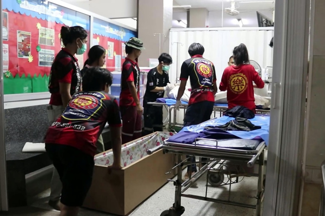 เมื่อถึงพบว่าลูกเรือประมง ได้เสียชีวิตไปแล้ว 3 ราย ขณะที่นำส่ง รพ.ปากน้ำชุมพร และทางเจ้าหน้าที่กู้ชีพกู้ภัยของมูลนิธิรักศีลธรรมปากน้ำชุมพร กำลังช่วยกันลำเลียงศพ ทั้ง 3 ราย ประกอบด้วย นายน้อย (ขอสงวนนามสกุล) อายุ 45 ปี อยู่ ม.6 ต.คลองวาฬ อ.เมือง จ.ประจวบคีรีขันธ์ นายวีรยุทธ (ขอสงวนนามสกุล) อายุ 37 ปี อยู่ ม.1 ต.เขาน้อย อ.ปราณบุรี จ.ประจวบคีรีขันธ์ และนายปราโมทย์ (ขอสงวนนามสกุล) อายุ 33 ปี อยู่ ม.6 ต.คลองวาฬ อ.เมือง จ.ประจวบคีรีขันธ์ มายังศาลาอเนกประสงค์ของมูลนิธิรักศีลธรรมปากน้ำชุมพร เพื่อรอมาญาติของแต่ละราย