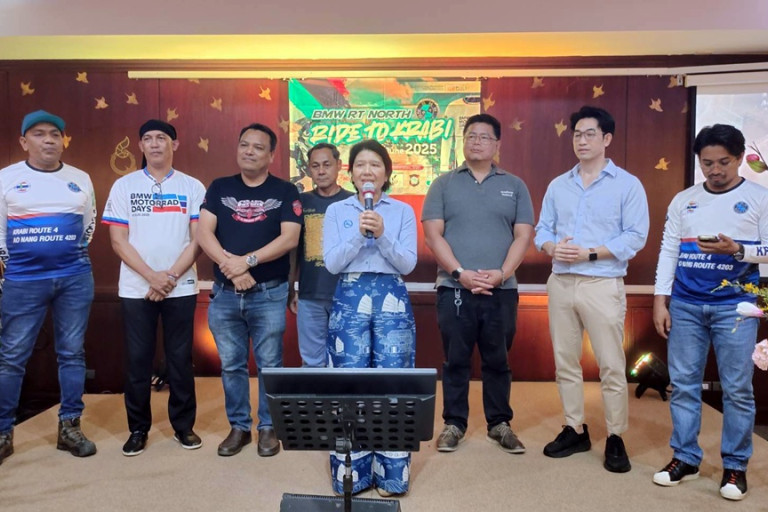 วันที่ 29 มิ.ย.68 นางสาวโศรยา หอมชื่น ผอ.ททท.สำนักงานกระบี่ ให้การต้อนรับนักท่องเที่ยวจากประเทศมาเลเซีย กลุ่ม BMW RT NORTH ที่เดินทางเข้ามาท่องเที่ยวด้วยรถบิ๊กไบค์ หรู ประมาณ 80 คน โดยมีนายอดิศร สุมาลี ผู้ประสานงานฯและกรรมการสภาอุตสาหกรรมการท่องเที่ยวแห่งประเทศไทย นายวัฒน เริงสมุทร ที่ปรึกษาสมาคมธุรกิจการท่องเที่ยว จ.กระบี่ ตัวแทนภาคเอกชน ร่วมให้การต้อนรับ จะขึ้นที่โรงแรมโกลเด้นบีชรีสอร์ท ต.อ่าวนาง อ.เมือง จ.กระบี่
