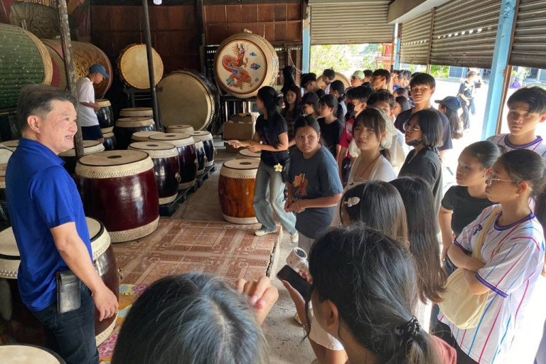 วันที่ 29 มิ.ย.68 นายศราวุธ เผ่าพยัฆ นายกองค์การบริหารส่วนตำบลเอกราช มอบหมายให้นายอภิจิต ชวรัตน์เจริญกิจ รองนายกองค์การบริหารส่วนตำบลเอกราช ออกต้อนรับคณะครู และนักเรียน งานสภานักเรียน กลุ่มบริหารงานงานกิจการนักเรียน จากโรงเรียนเตรียมอุดมศึกษาน้อมเกล้า จังหวัดสมุทรปราการ จำนวน 62 คน ซึ่งทางโรงเรียนฯมีความประสงค์ให้นักเรียนได้ศึกษาดูงานด้านศิลปะ ภูมืปัญญา และวัฒนธรรม เพื่อศึกษาการผลิตกลองหลากหลายประเภทตั้งแต่ขนาดเล็กไปจนถึงขนาดใหญ่ เช่น กลองทัด กลองยาว กลองสั้น กลองรำวง ฯลฯ รวมทั้งกลองขนาดกะทัดรัดที่ผลิตขึ้นเป็นของที่ระลึก และกลองขนาดใหญ่ที่สุดในโลก ที่สื่อถึงเอกลักษณ์ของชุมชนที่มีมาเป็นระยะเวลานาน และนำความรู้ที่ได้จากการศึกษาดูงานมาพัฒนากระบวนการศึกษาเรียนรู้ ของนักเรียนต่อไป